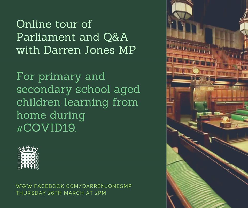 Darren Jones, MP for Bristol North West, will be giving an online tour of the Houses of Parliament at 2pm tomorrow, aimed at primary and secondary school children learning from home.