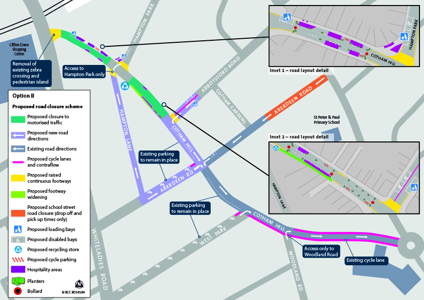 Option B: Cotham Hill pedestrianisation scheme – map: Bristol City Council