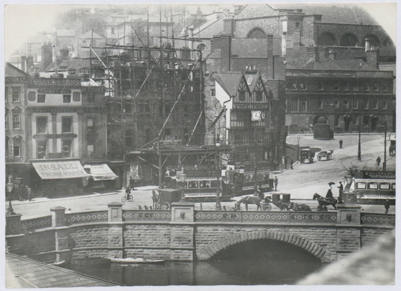 St Augustine’s Bridge in the 1900s, with the Colston Hall in the background – photo: Bristol Archives