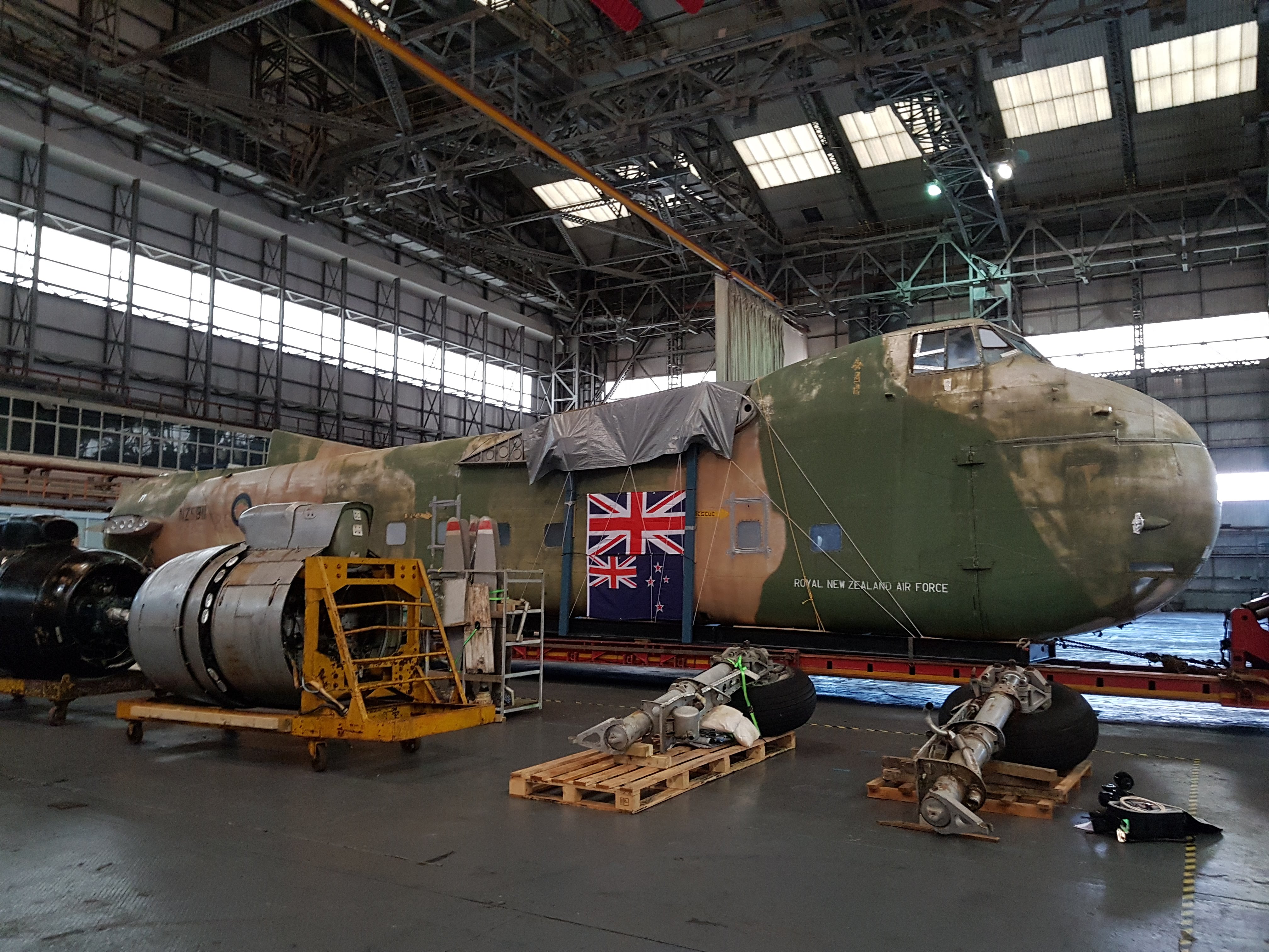 A bracing cold breeze gusts through the huge metal doors, daylight creeps in through window panels set high in the walls and ceiling. The sheer scale of the interior dwarfs the freighter and a colourful collection of vehicles, including a historic green double decker bus and small aircrafts, stored within.