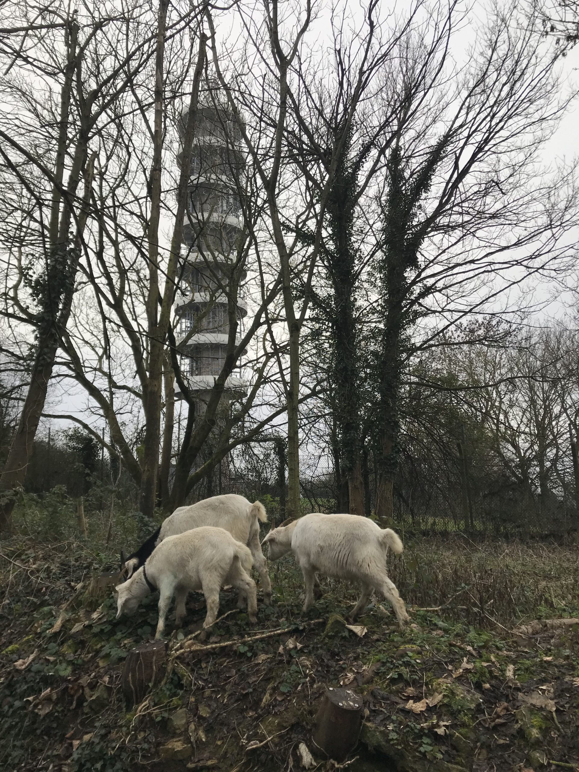 Goats graze near the Purdown BT tower – photo: Martin Booth