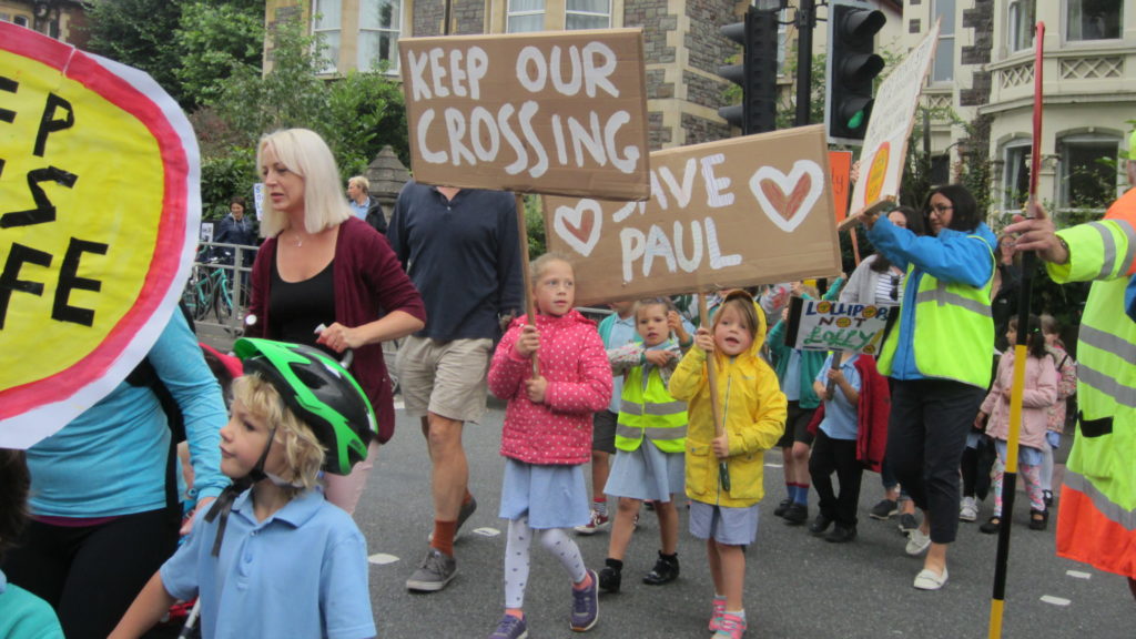 “Save Paul!” was chanted by children and parents from Hillcrest Primary School, who turned out to protest against plans to cut their crossing patrol.