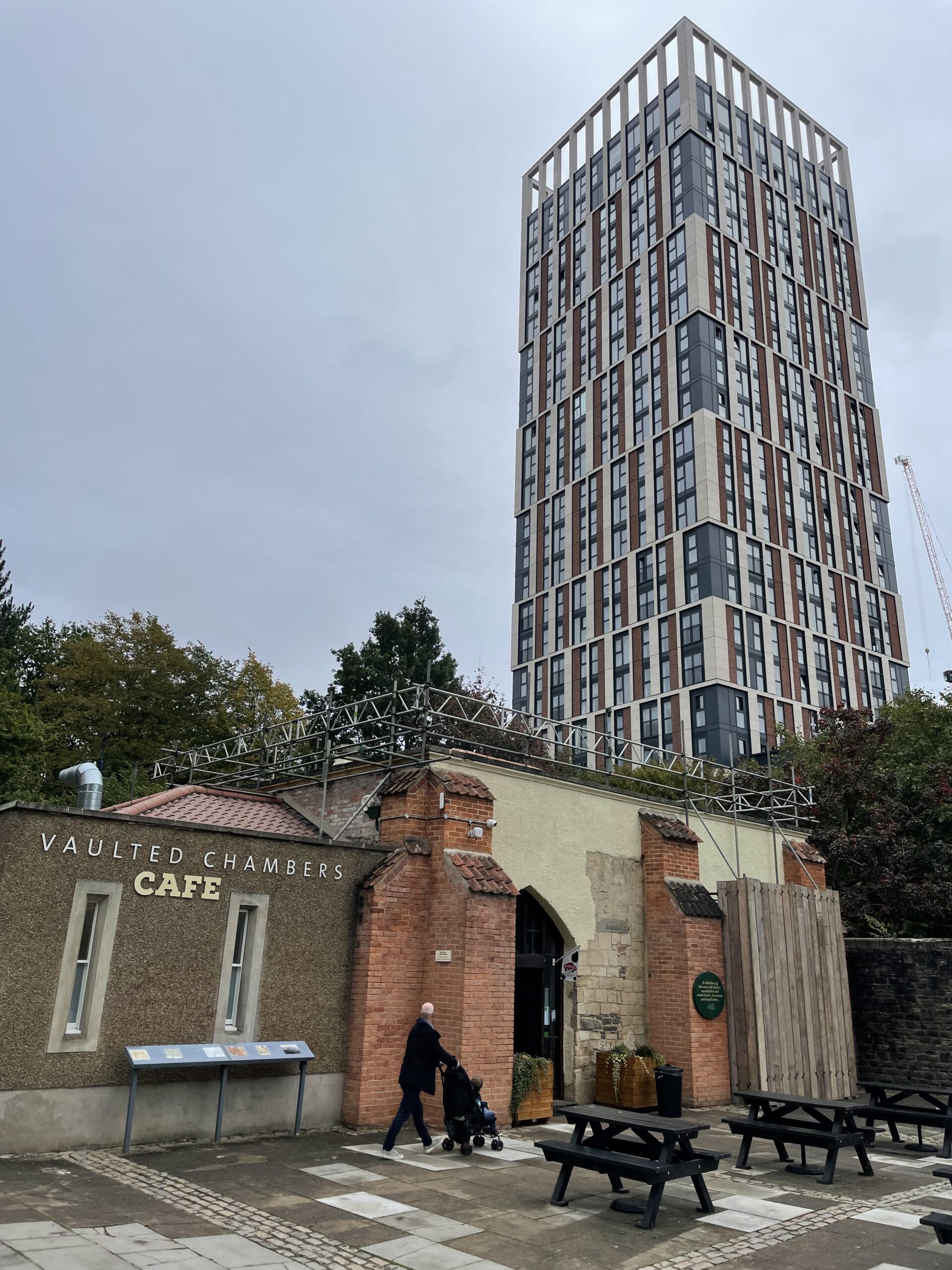 Castle Park View tower now looms over the Vaulted Chambers – photo: Martin Booth