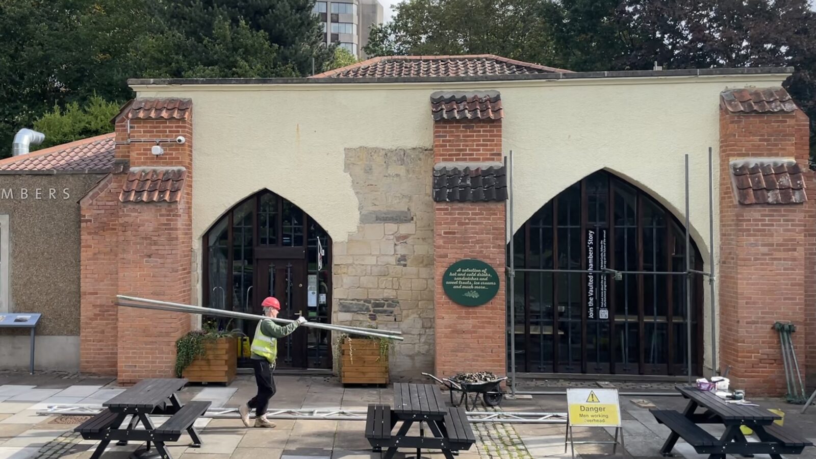 Scaffolding has recently been erected on the Vaulted Chambers which caused the cafe to be closed for a couple of days.