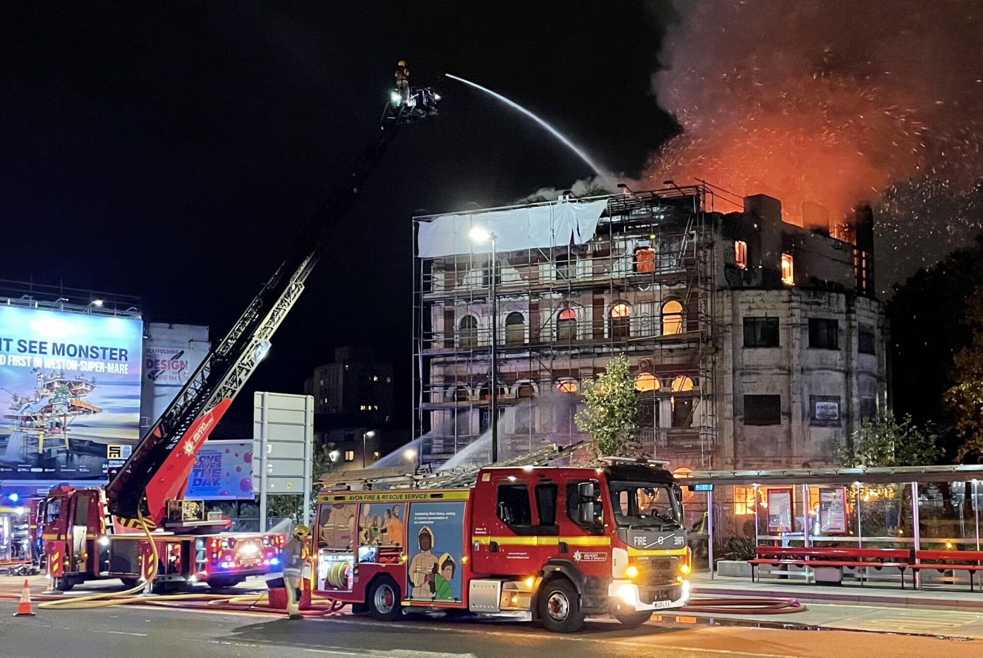 Fire crews from across Bristol helped fight the blaze at the former Grosvenor Hotel – photo: Martin Booth