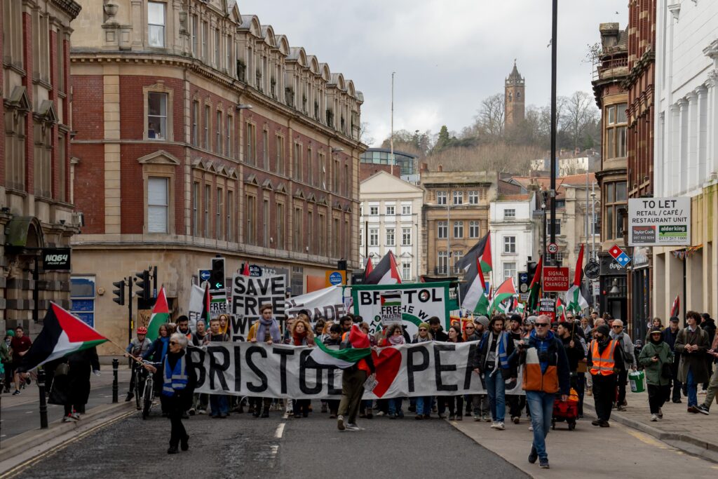 The Bristol Palestine Alliance march makes its way through College Green – photo: Rob Browne