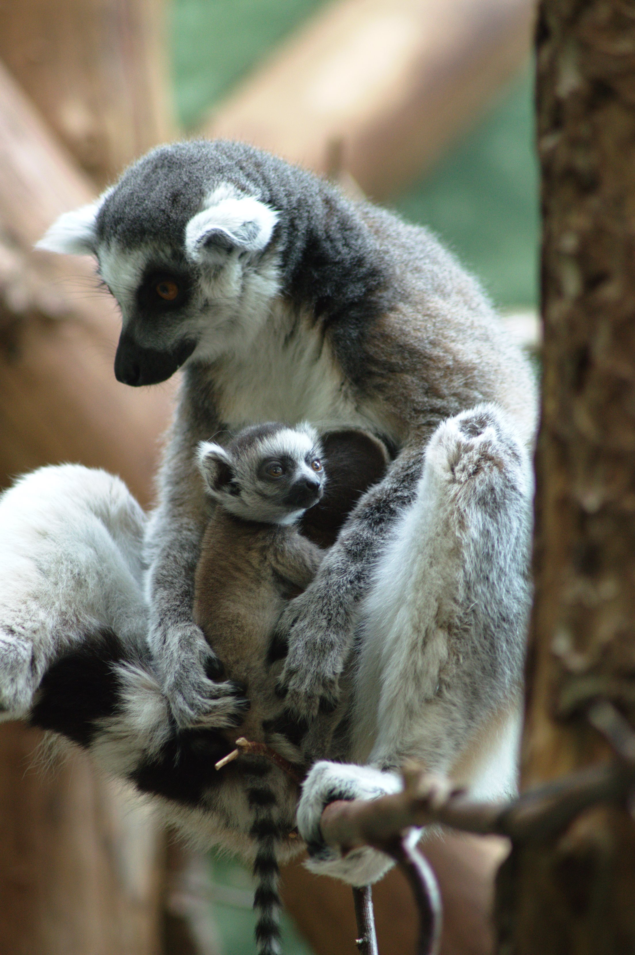 Ring-tailed lemur with her baby at Bristol Zoo