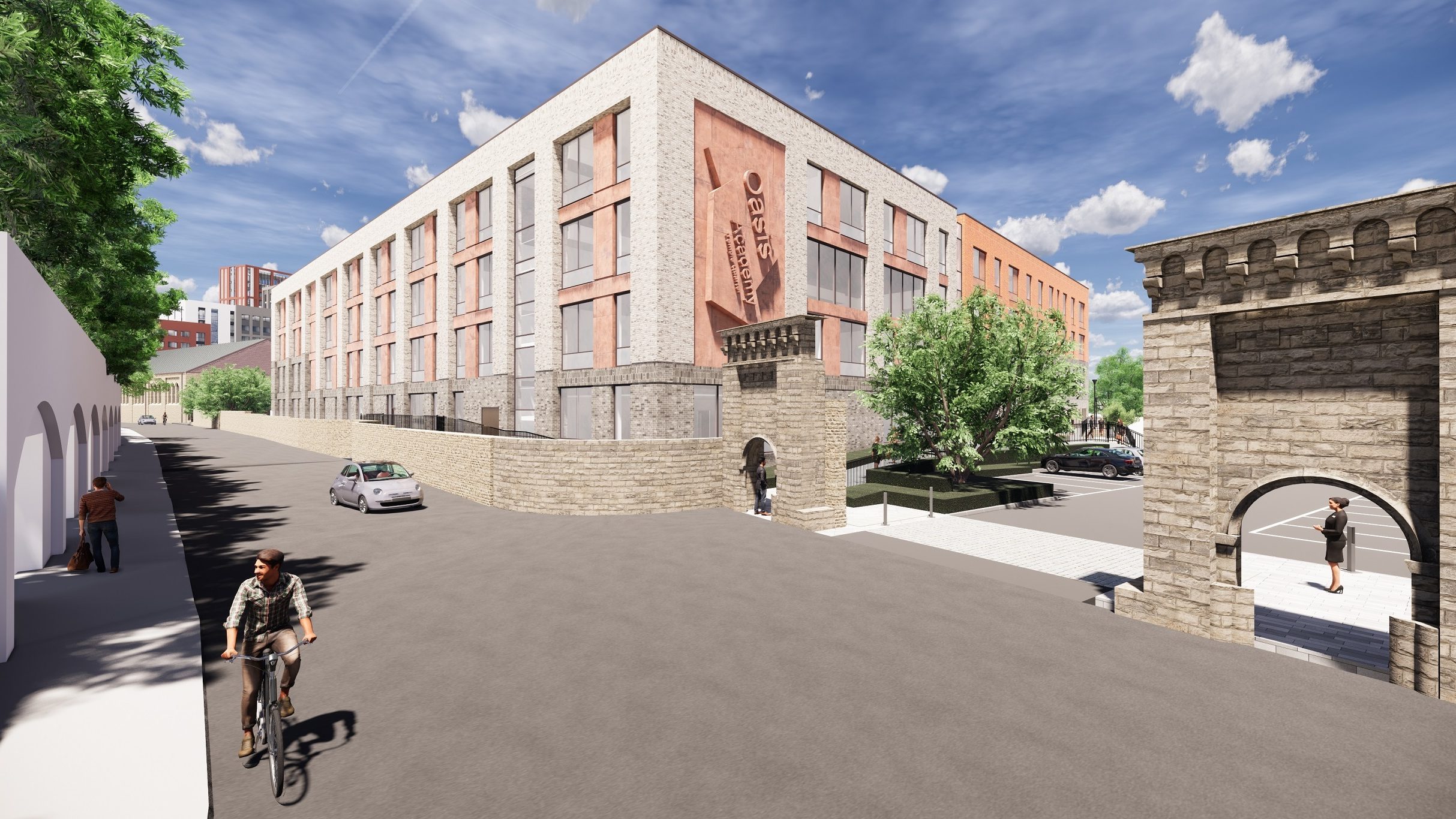 A CGI of Oasis Academy Temple Quarter from the Silverthorne Lane entrance. Image: Square Bay/Bristol City Council.