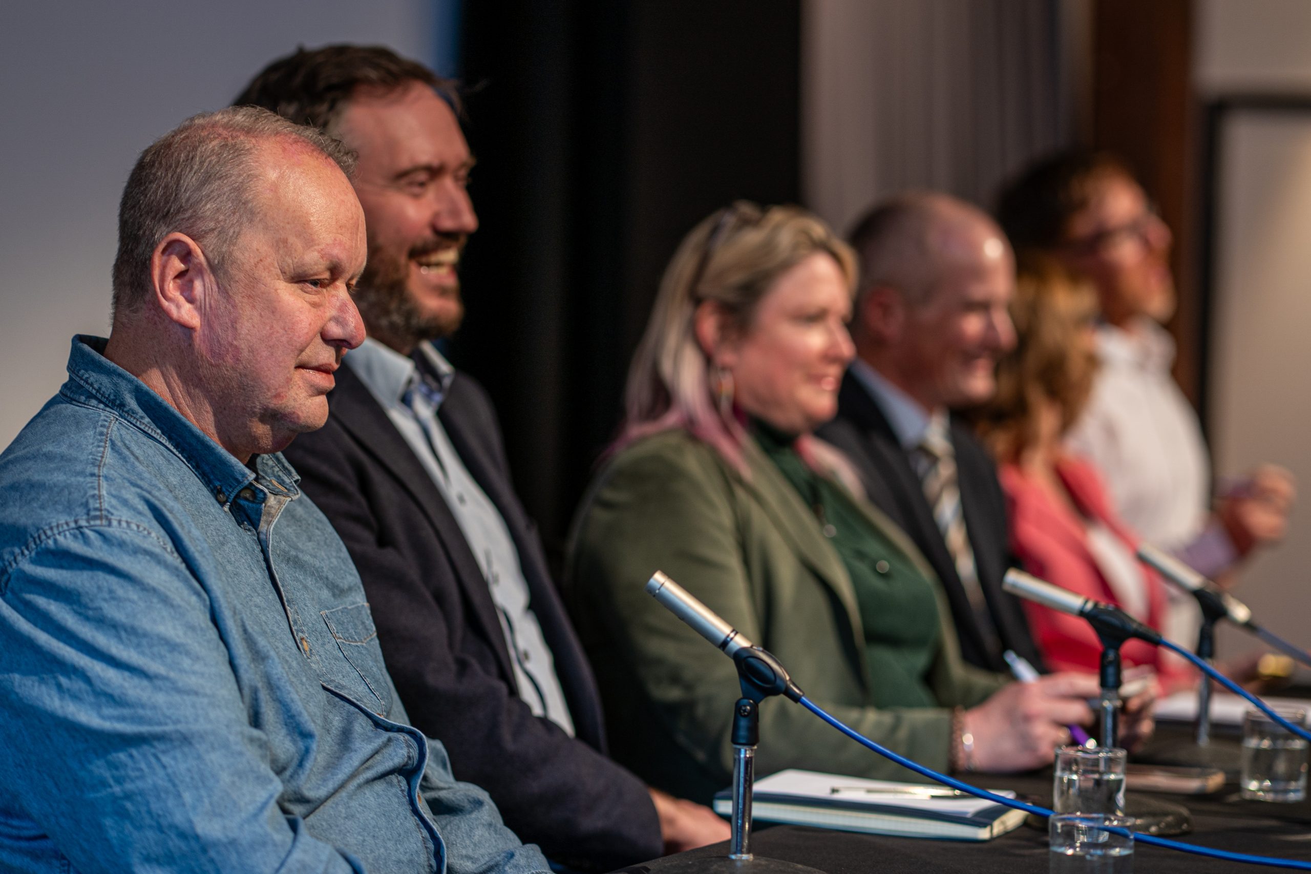 Candidates answered questions from audience members at the event at the Watershed and from those watching online