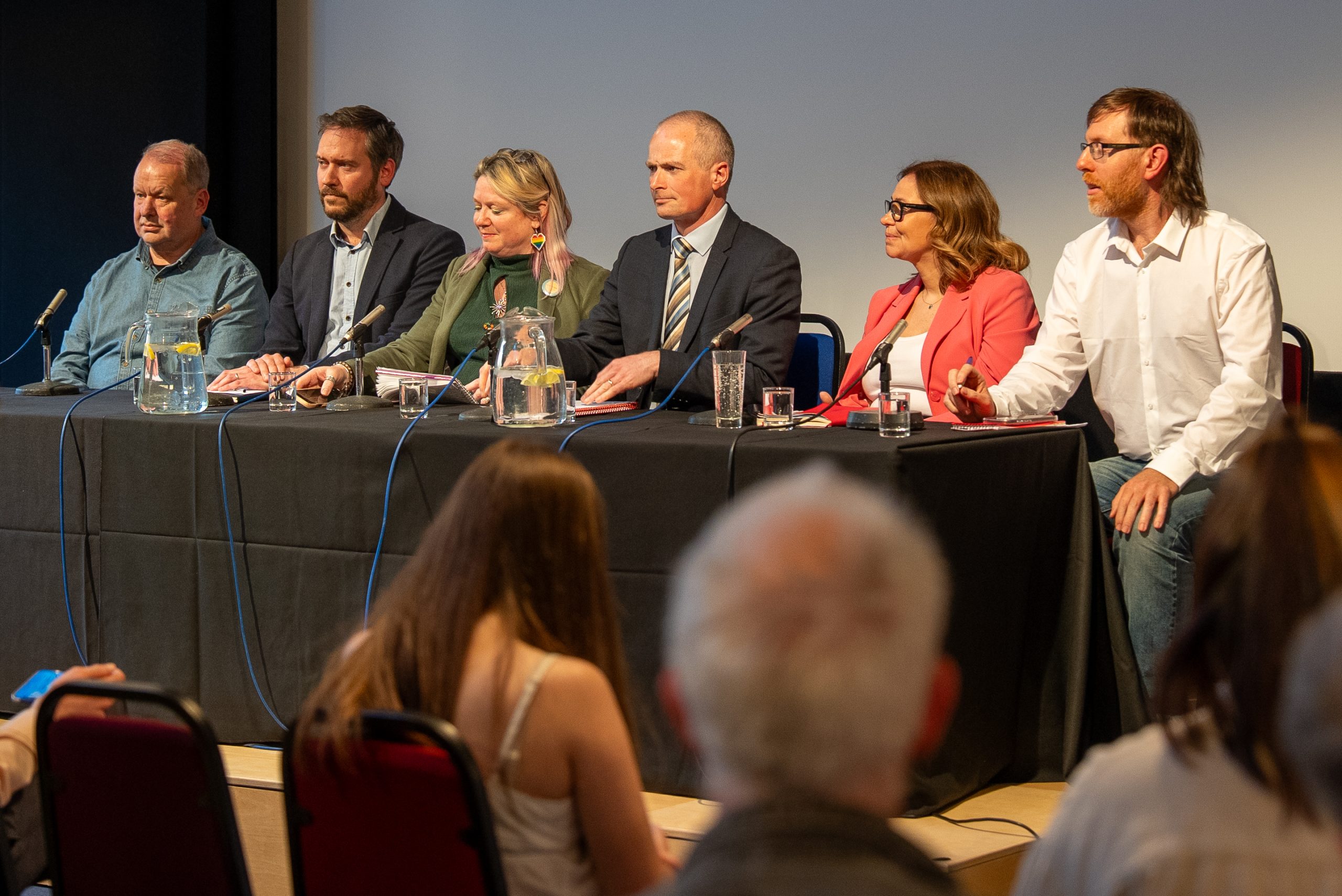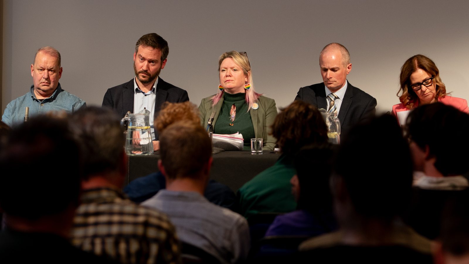 A diverse crowd sat in the audience at the Watershed and more watched the livestream of the hustings online, which was also interpreted live in British Sign Language.