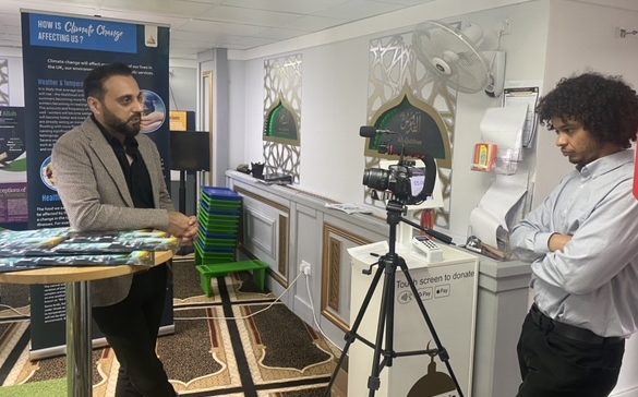 Abdul Malik, chair of Easton Jamia Mosque being interviewed by Junior Sheikh, director of the MTM Awards, about the environmental initiative – photo courtesy of MTM Awards