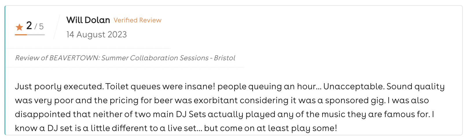 One reviewer complained that Beavertown and Propyard had “oversold tickets”.