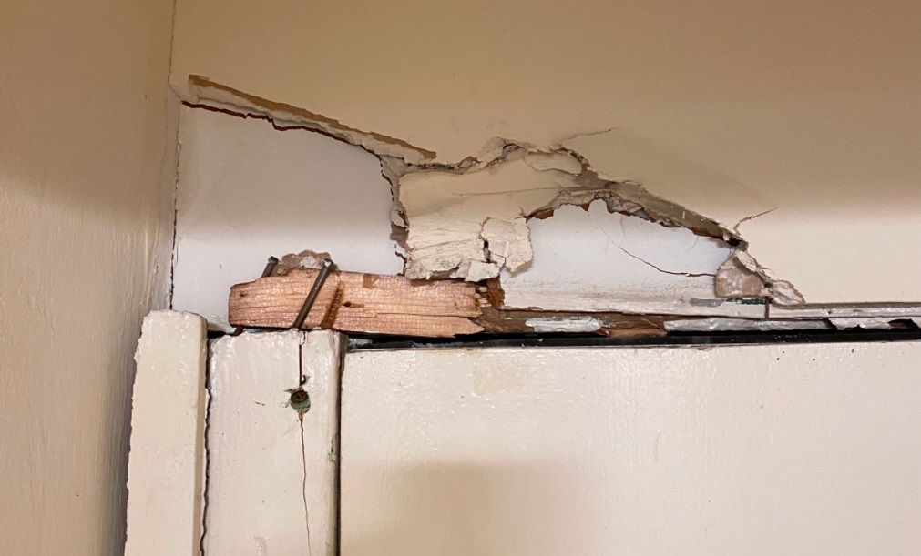 One of the doors broken by police when unknown officers unlawfully entered the student flat – photo: Billy Stockwell
