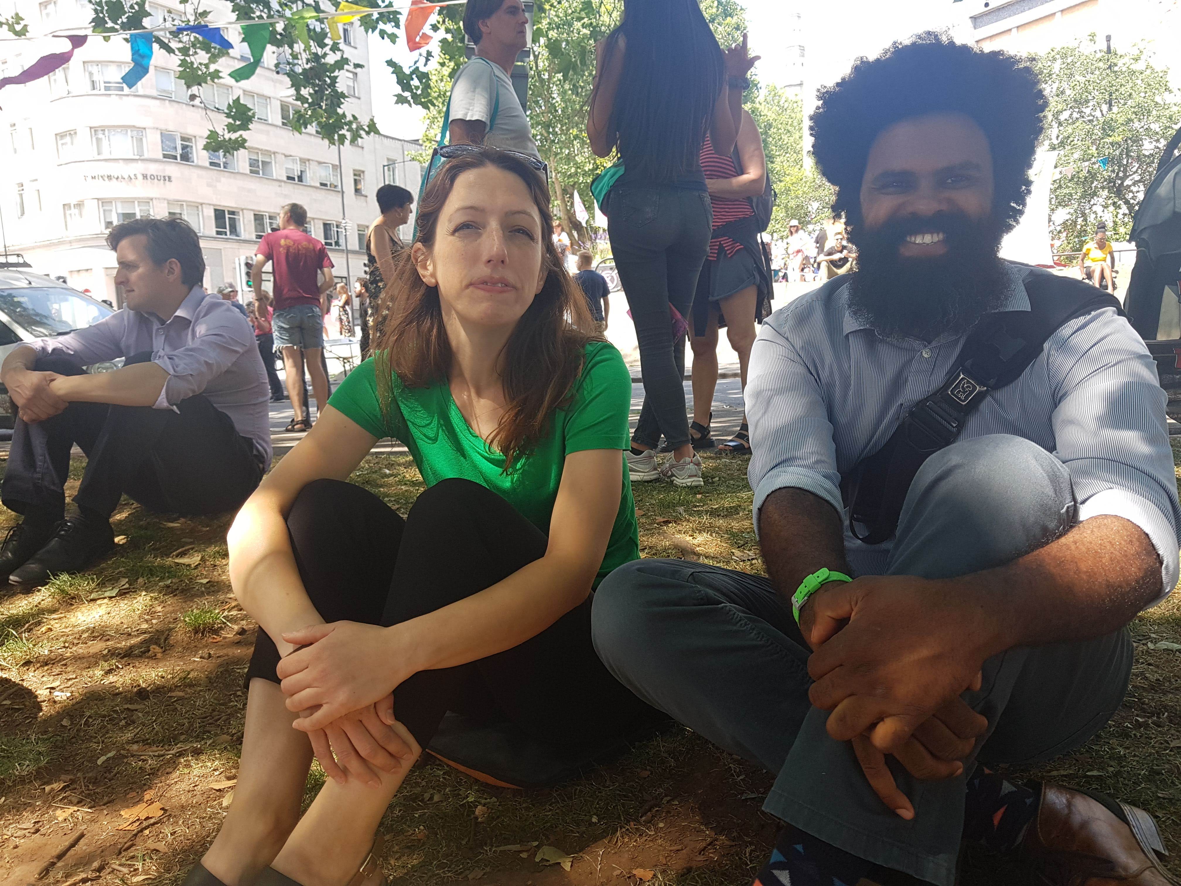 “It’s good to see that Bristol is taking part in something like this because we do need some change,” agrees Adrian Harrison, chilling in the shade of Castle Park with Anwen Morgan on their lunch break.