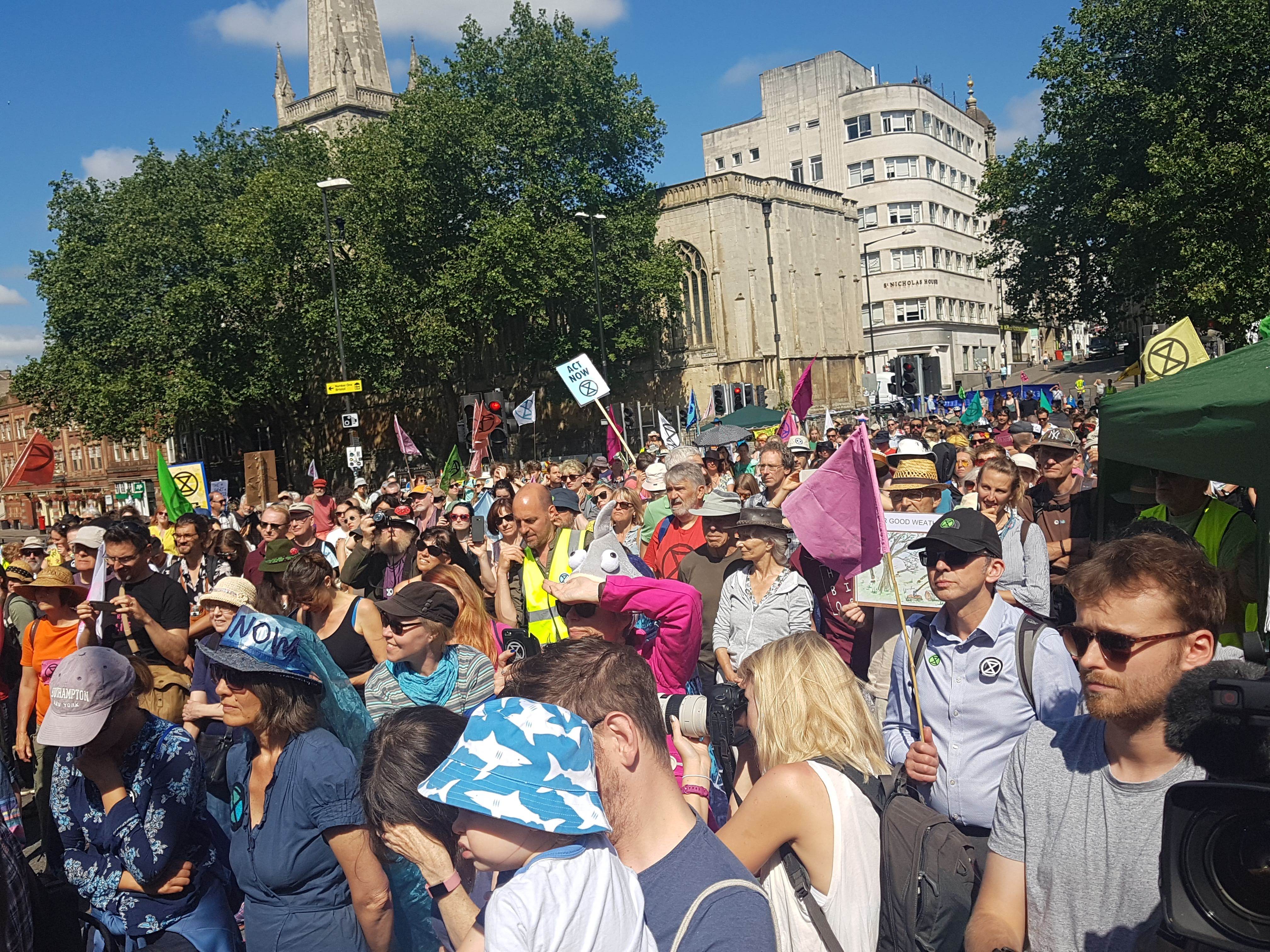 It is the first of a five-day ‘Summer Uprising’ in Bristol and four other cities across England and Wales as campaigners turn out in large numbers to call for immediate action to tackle the climate change emergency.
