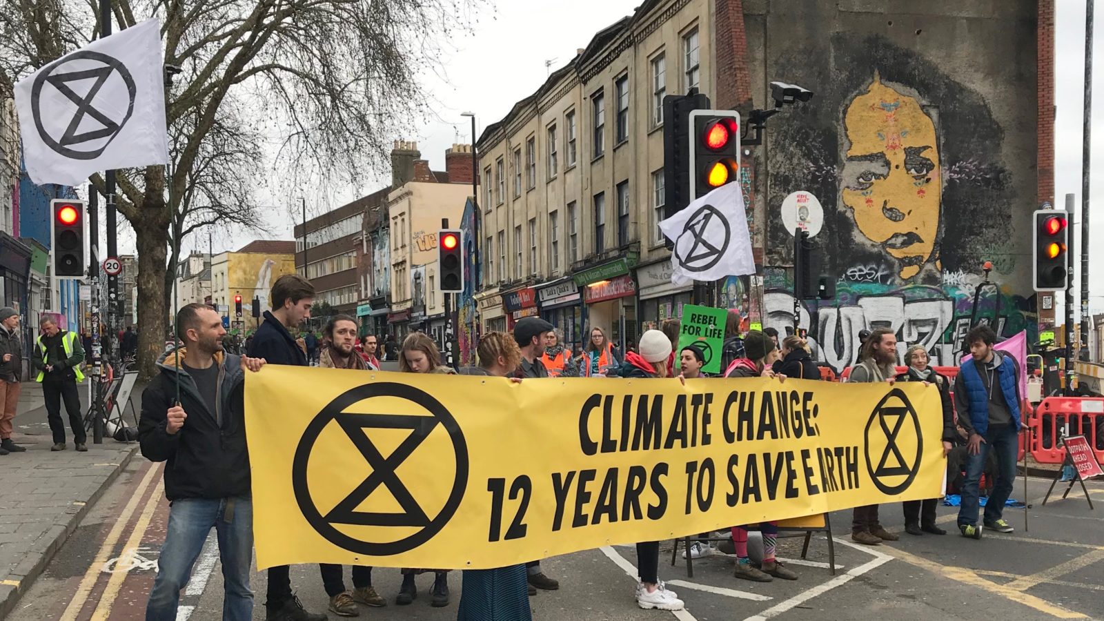 Extinction Rebellion protesters stop traffic to host street party on Stokes Croft