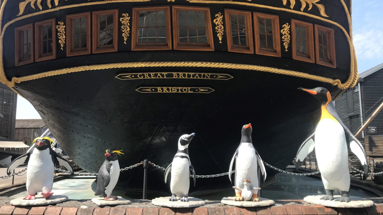 On Tuesday, the penguins were positioned next to the free photography exhibition in Brunel Square which explores the Falklands today as well as documenting the Great Britain’s return to her home port.