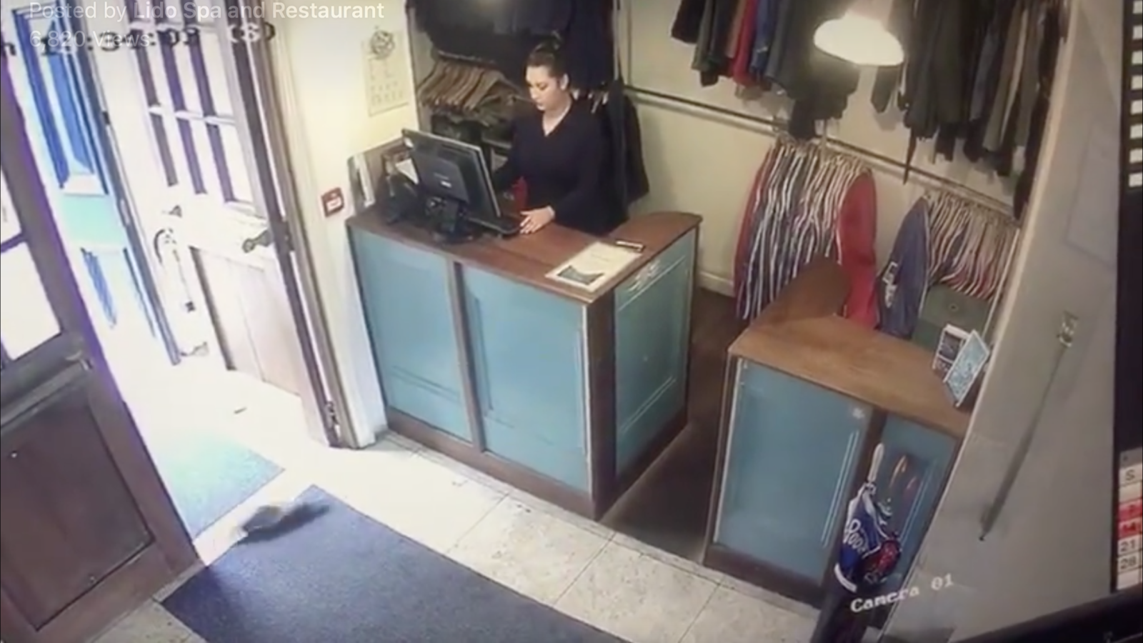 The creature, perhaps on his way back from ferreting around the independent shops on Alma Vale Road, bypassed unsuspecting staff to have a nose around in the cloakroom.