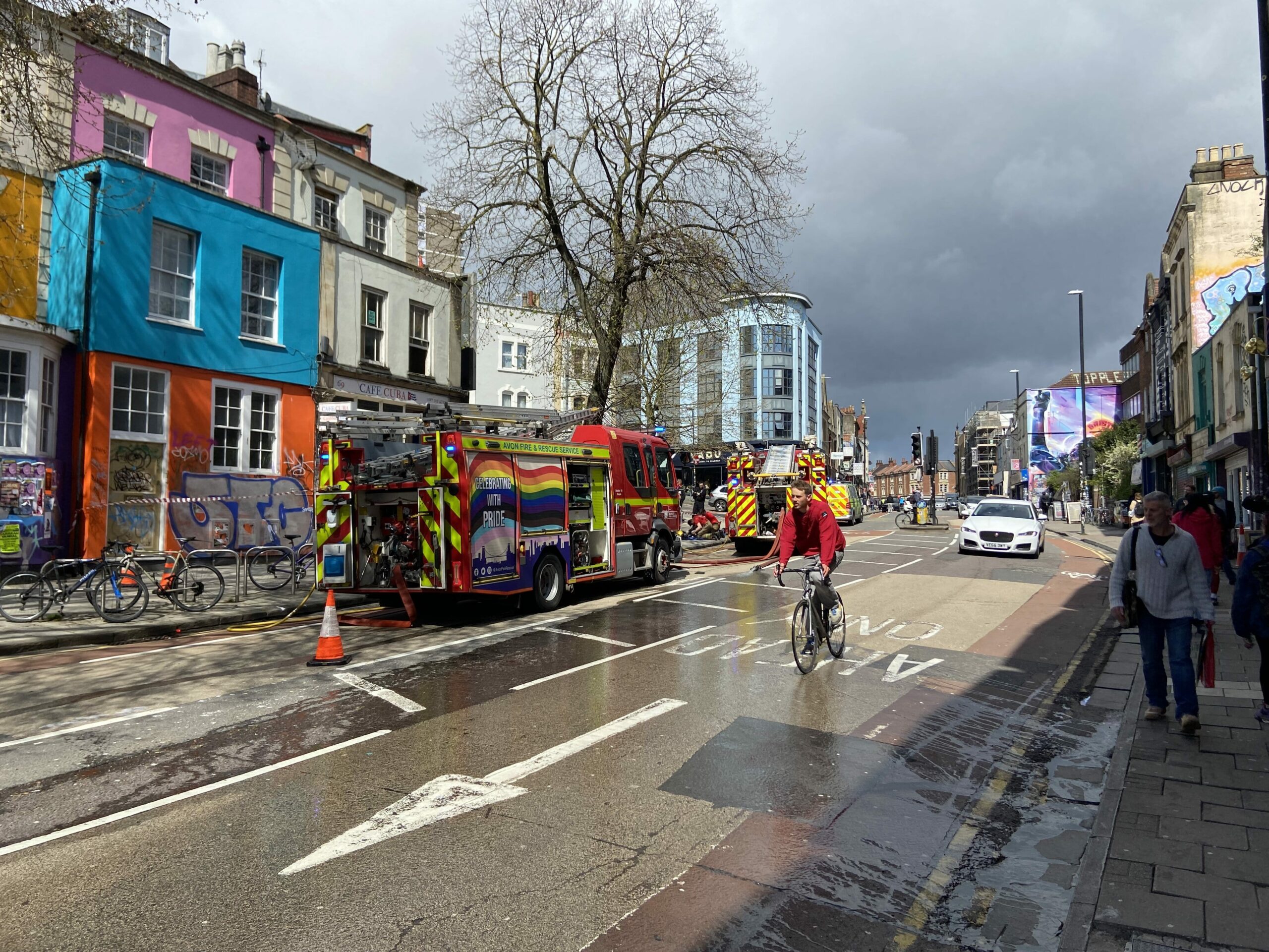 The northbound section of the A38 in Stokes Croft was closed while fire fighters tackled the blaze – photo: Matthew Ringshaw