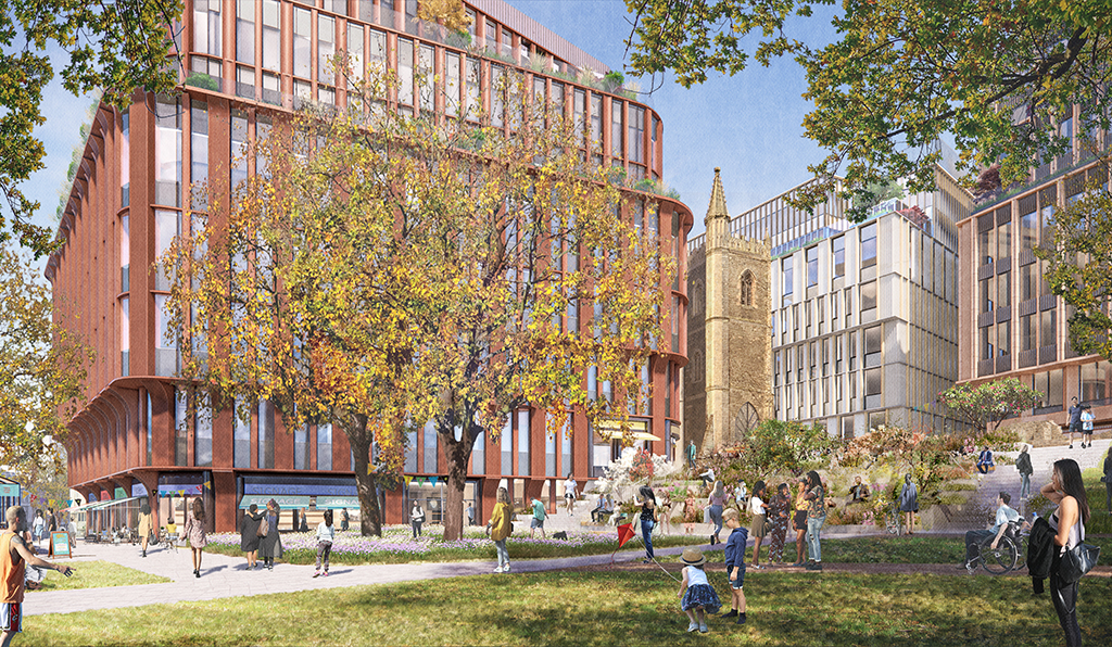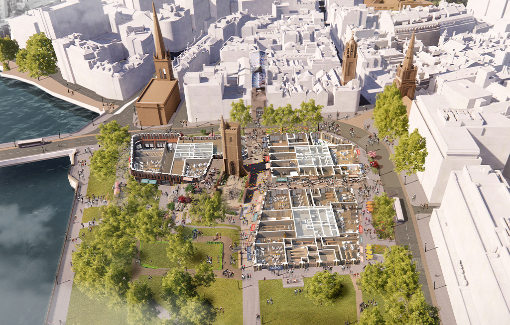 The proposals will repair the historic church’s tower (all that remains of it following bombing in the Second World War) and place it “at the heart of this vibrant new destination that will combine Bristol’s contemporary culture with its rich history and heritage”.