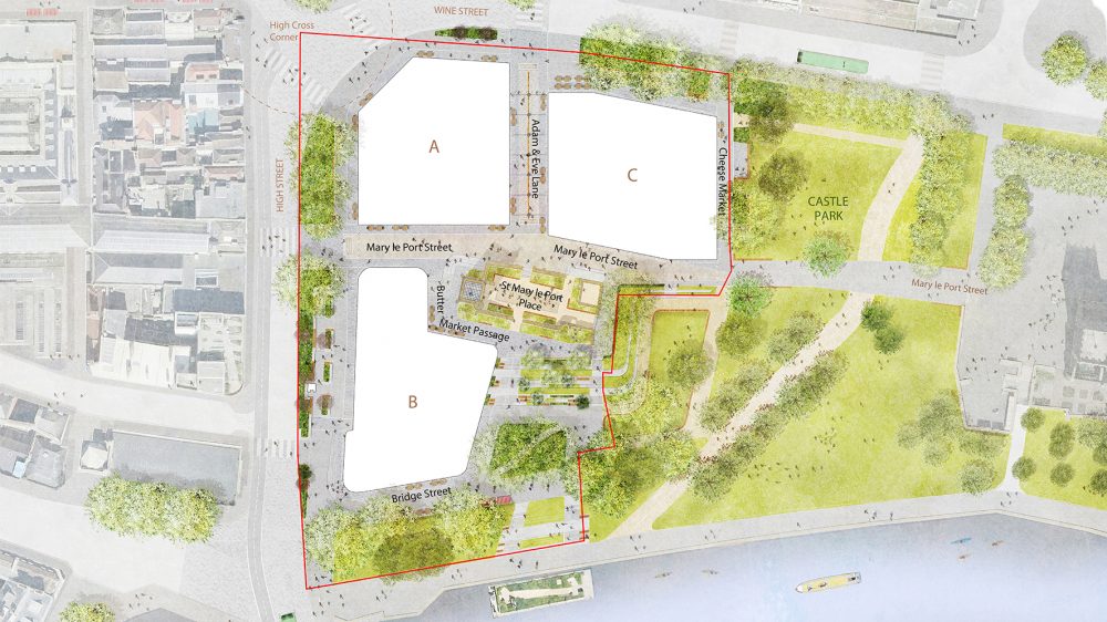 St Mary le Port church gives its name to the area of Castle Park which developers hope will be a “new place to work, shop, and relax”.