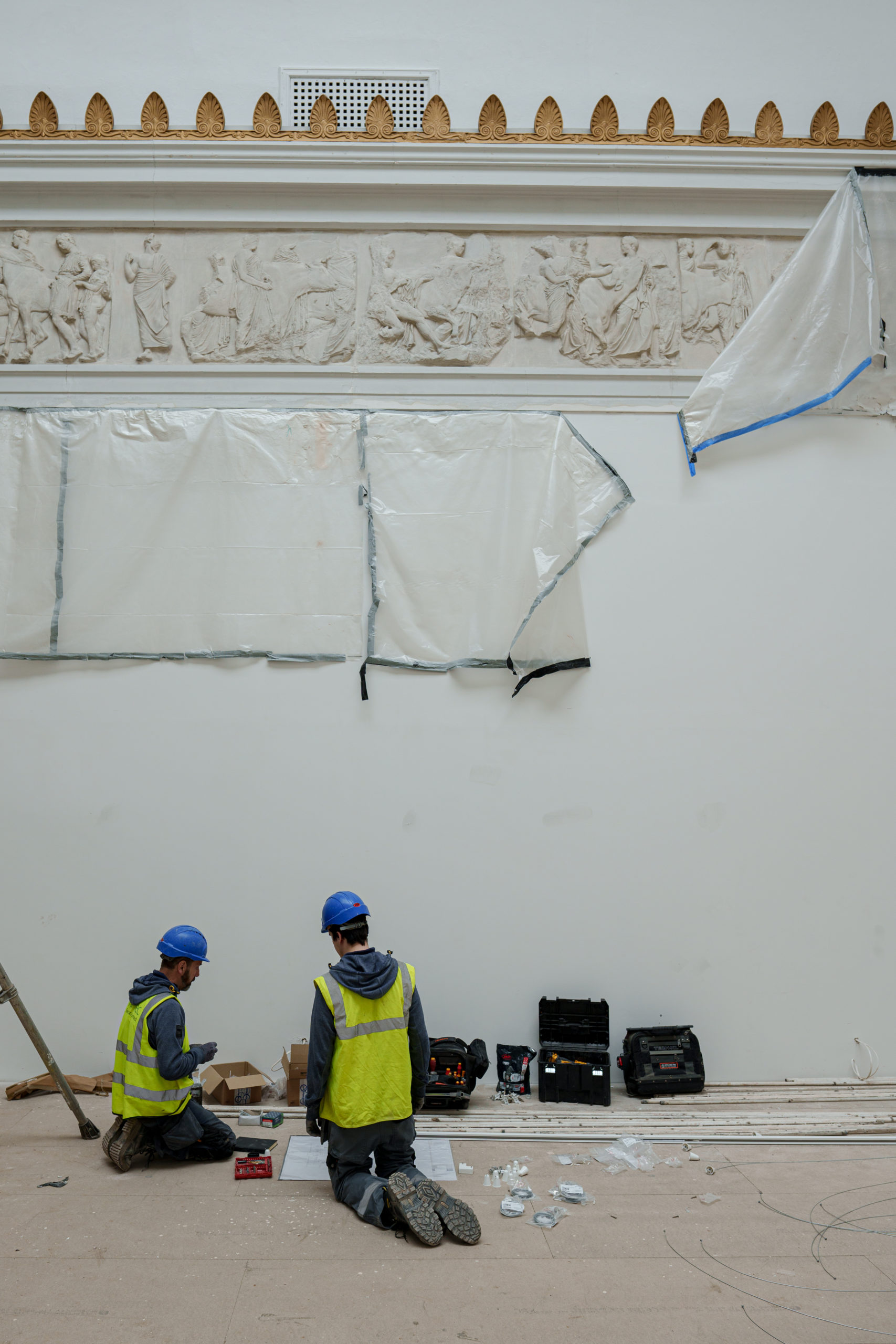 One of the main tasks was to create new roof lanterns above the main gallery, as well as lowering the windows on the facade to create new doorways, adding air source heat pumps and installing new underfloor heating.