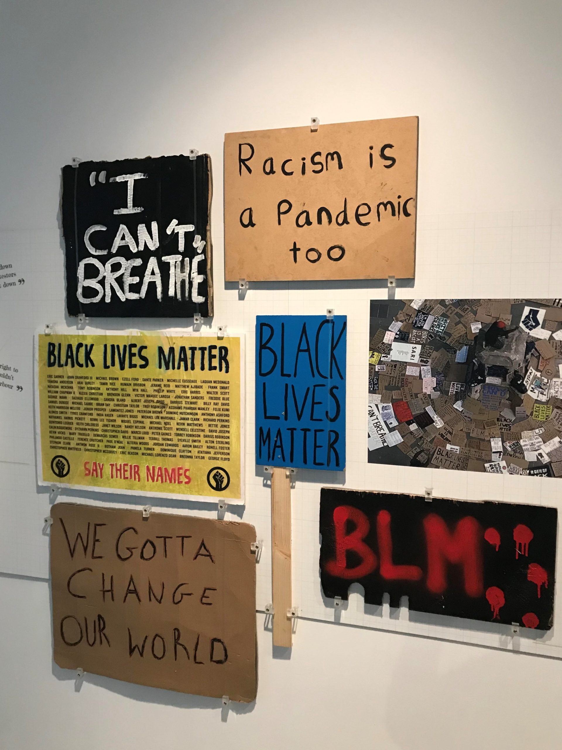 Also on display on the first floor of the M Shed alongside the statue are placards from the Black Lives Matter protest that was taking place as the statue was toppled and thrown into the docks.
