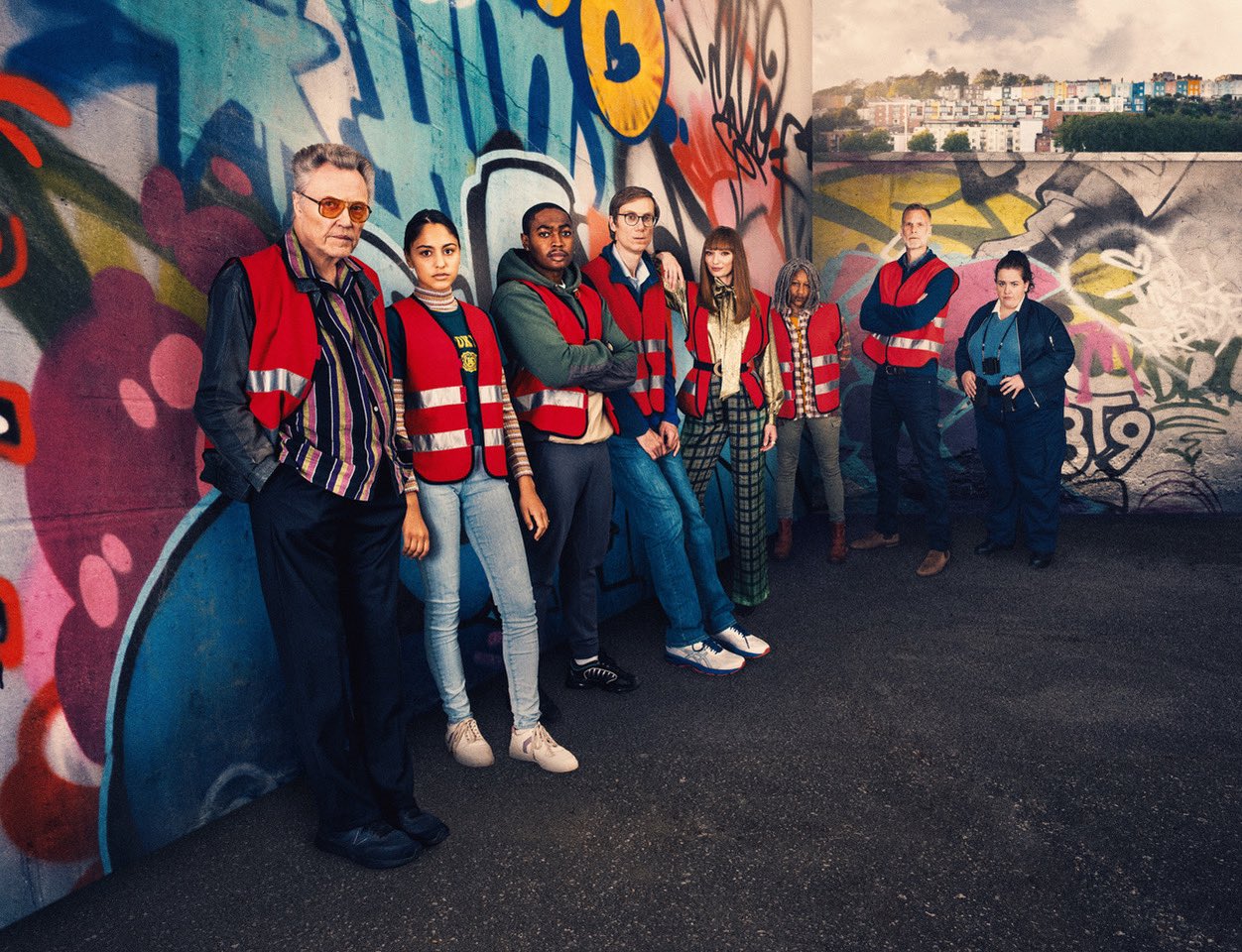 The Outlaws cast (and a glimpse of Hotwells and Cliftonwood) – photo: BBC / Amazon Studios / Big Talk / Four Eyes