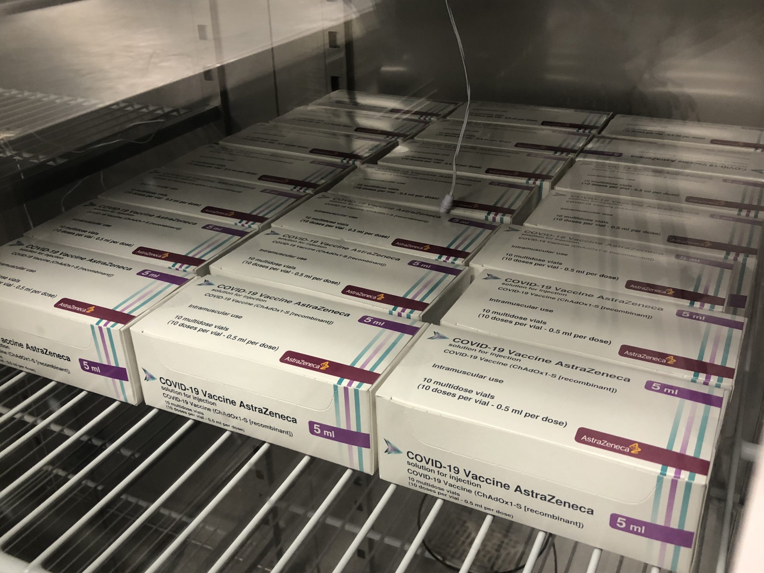 Boxes of the AstraZeneca vaccine have been moved into the stadium – photo: Claire Hayhurst