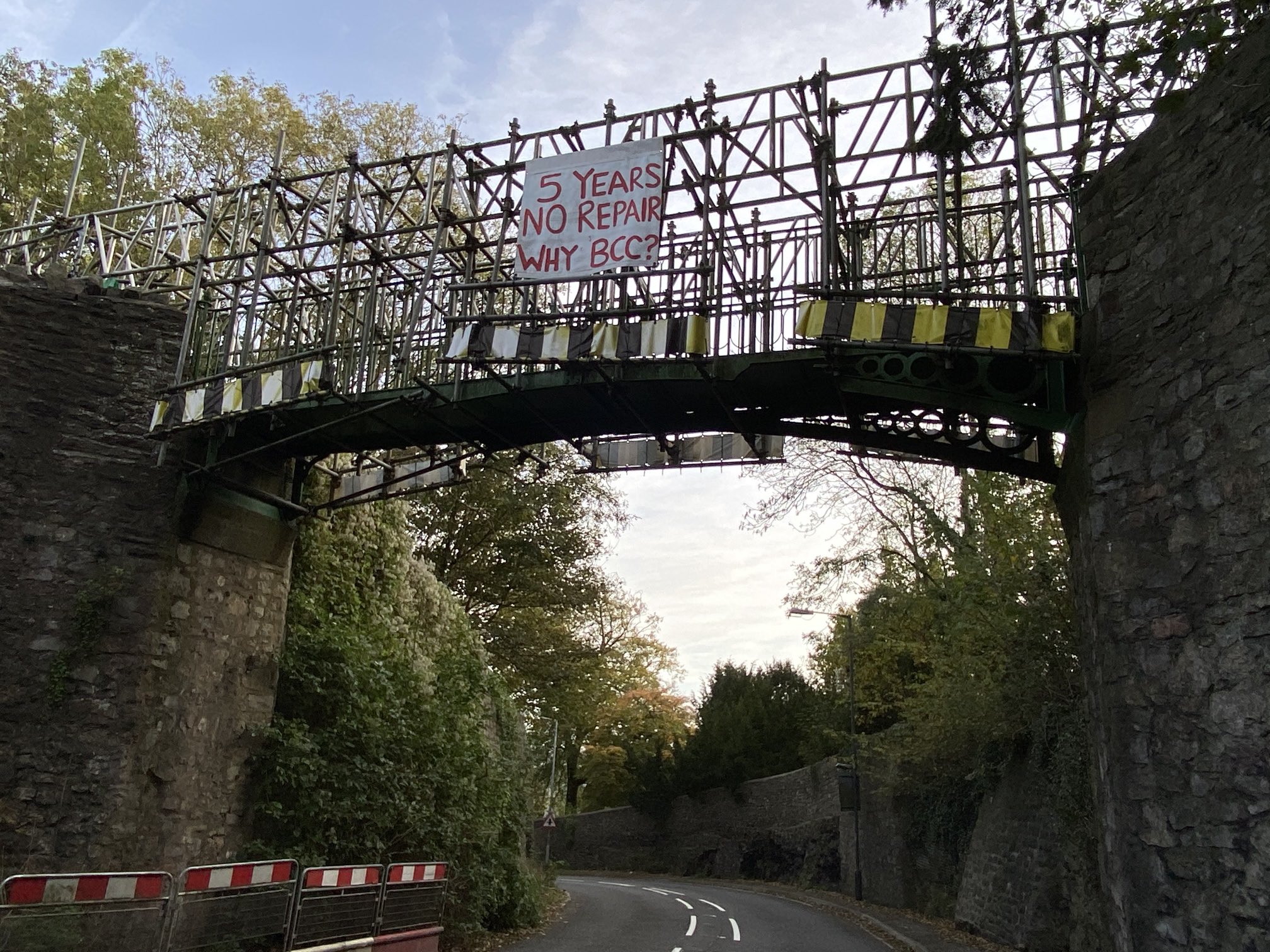 ‘Fix our bridge, save scaffold hire’ – photo: Janet Poole