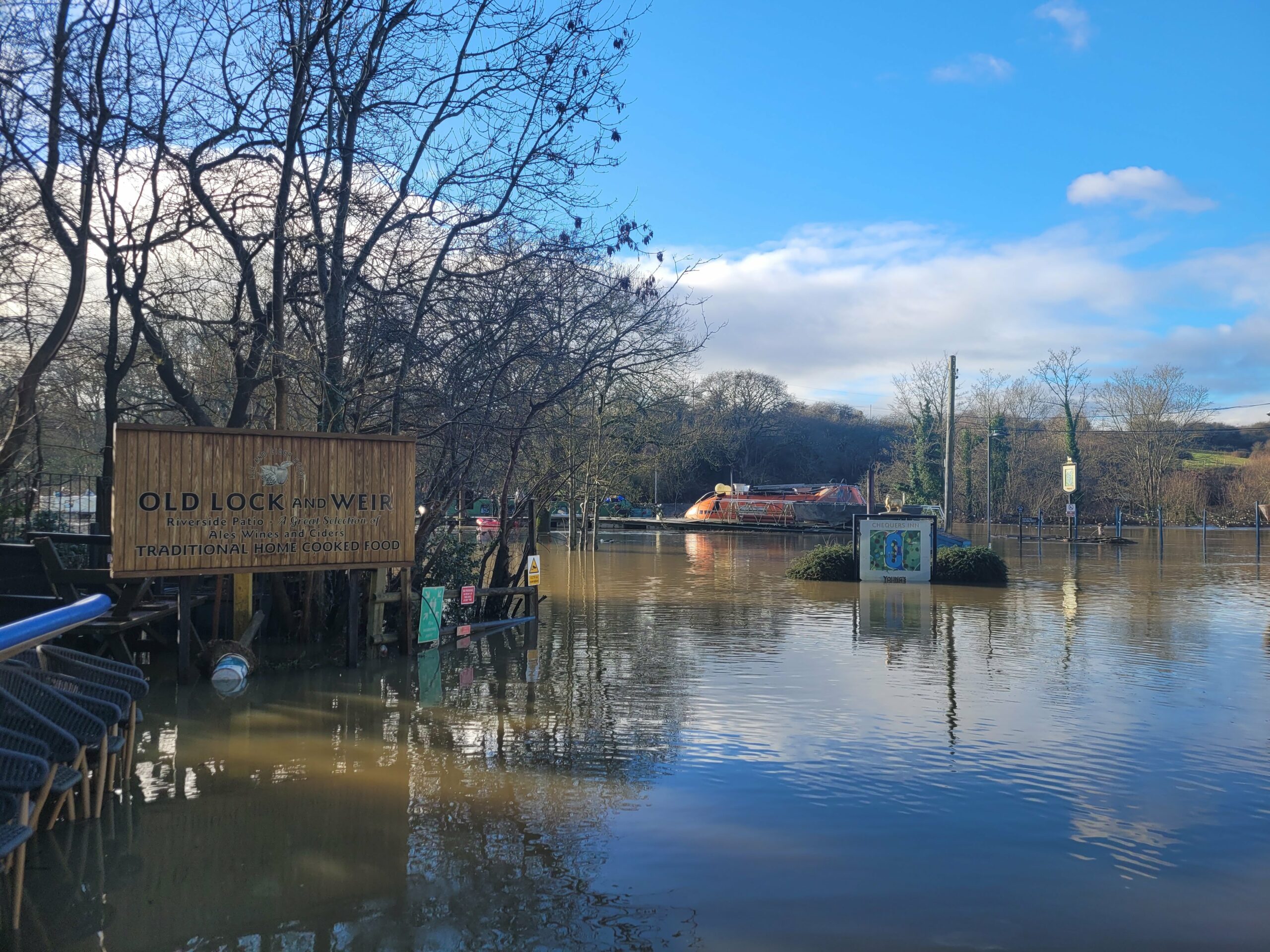 High water levels rendered the Chequers Inn and the Old Lock & Weir unreachable