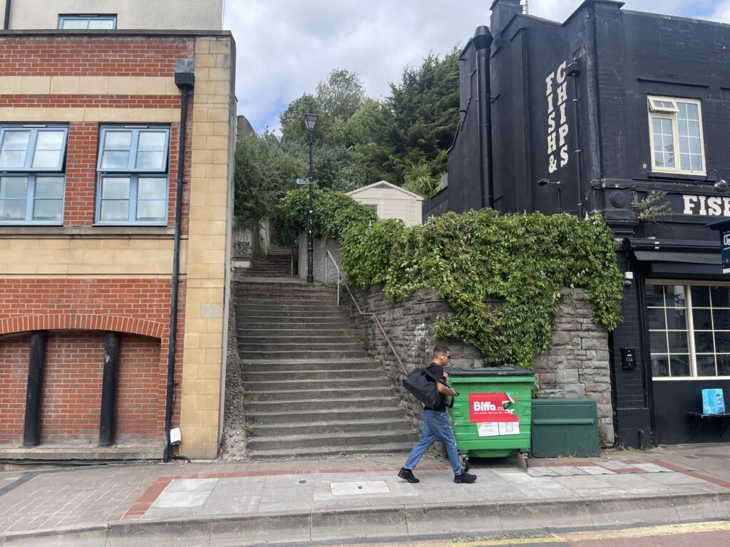 Church Path Steps, more commonly known as the Mardyke Steps, connect Hotwell Road and the corner of Cliftonwood Terrace and Church Lane, close to the Lion pub in Cliftonwood – photo: Martin Booth