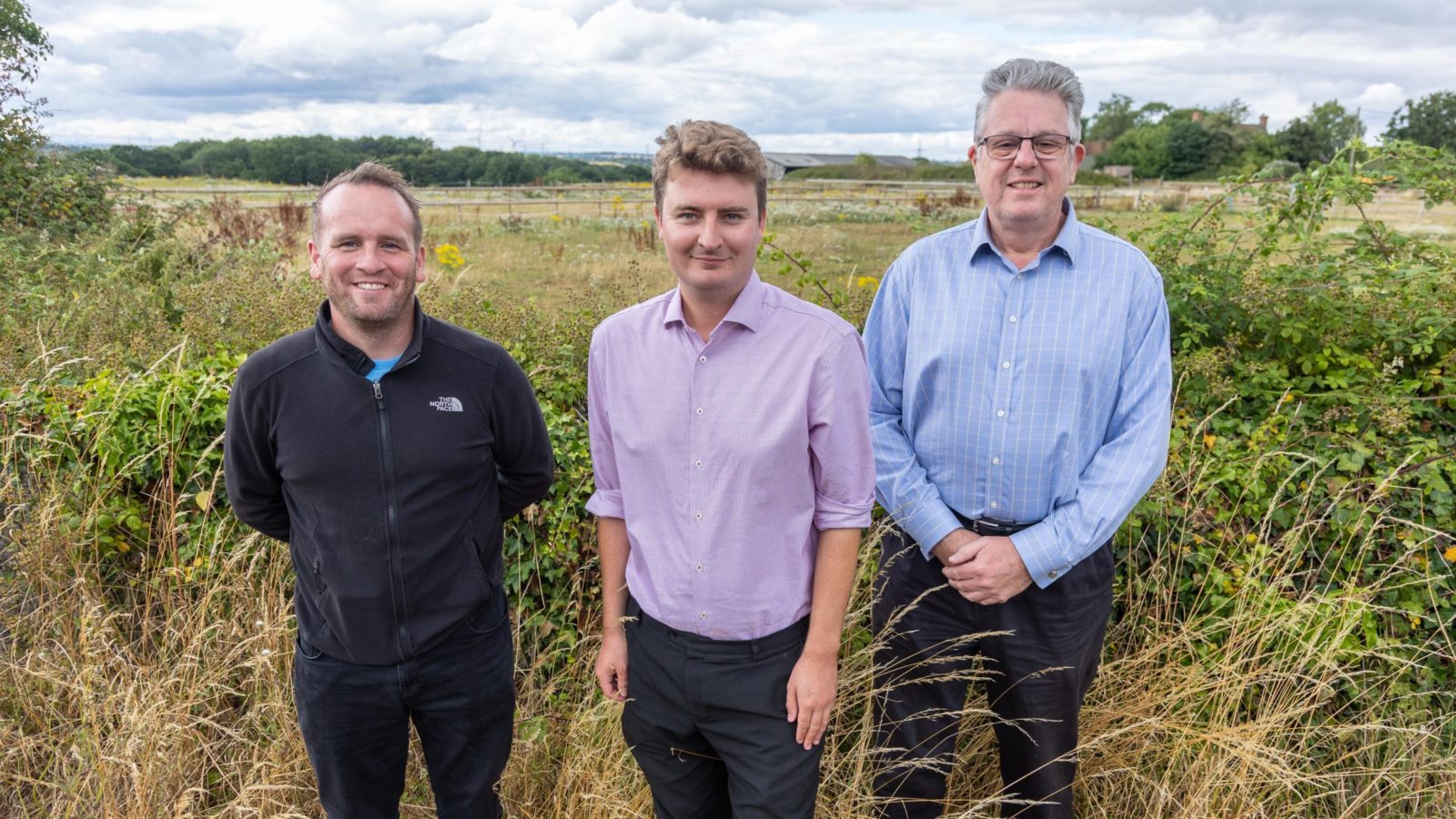 Main photo: Councillor Ben Burton, Tom Howell and Tim Niblett at Frampton End farm, South Gloucestershire Council