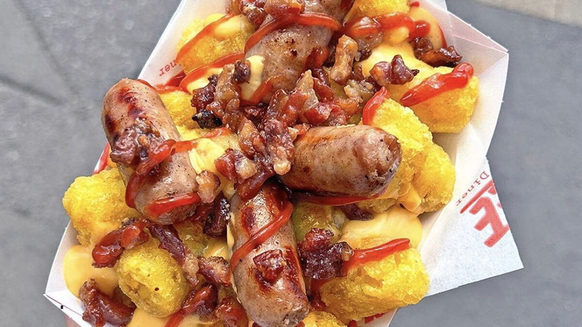 Mini hash brown tots, mini sausages, American cheese sauce, smoked bacon bits and a tidy bit of red or brown on top – what’s not to love? Enjoy these with your Big Breakfast Burger, Big Breakfast wrap, any pancakes or Waffles – available in store only.