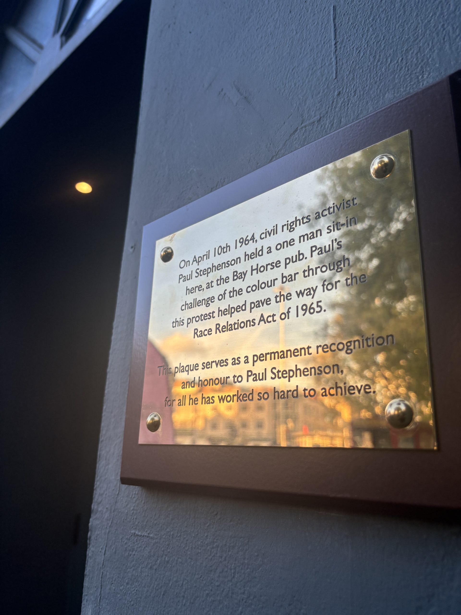 He passed only a week after a commemorative plaque was installed at the Bay Horse pub, a pub which, in 1964, denied Stephenson a pint because of the colour of his skin.