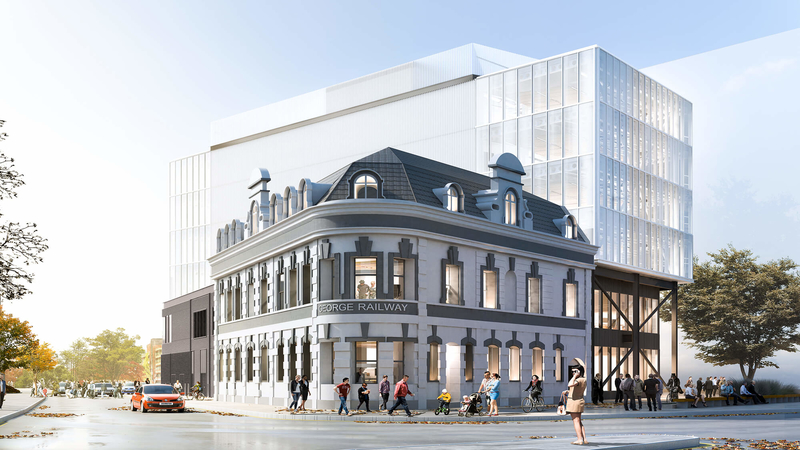 The proposed Engine Shed 02, which would provide 43,000 sq ft of column-free, adaptable space ideal for young businesses and start-ups, is on the site of the currently derelict George and Railway Hotels.