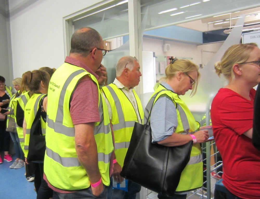 There are big queues for the cafe during a break in proceedings at the Bristol East count: