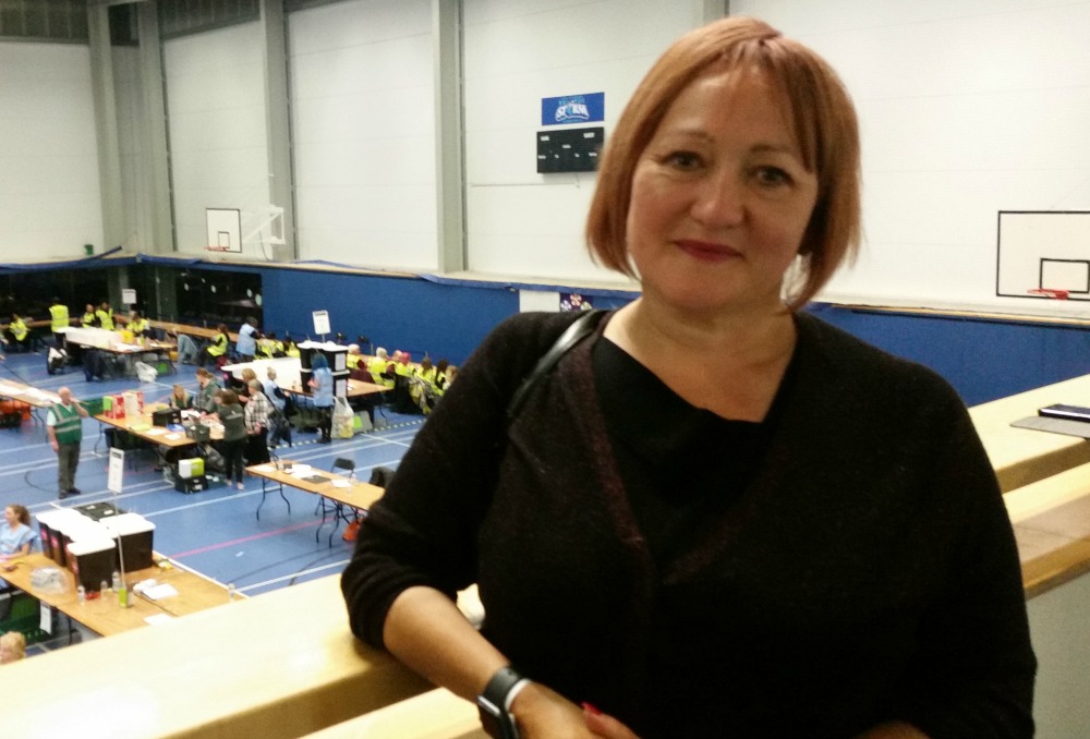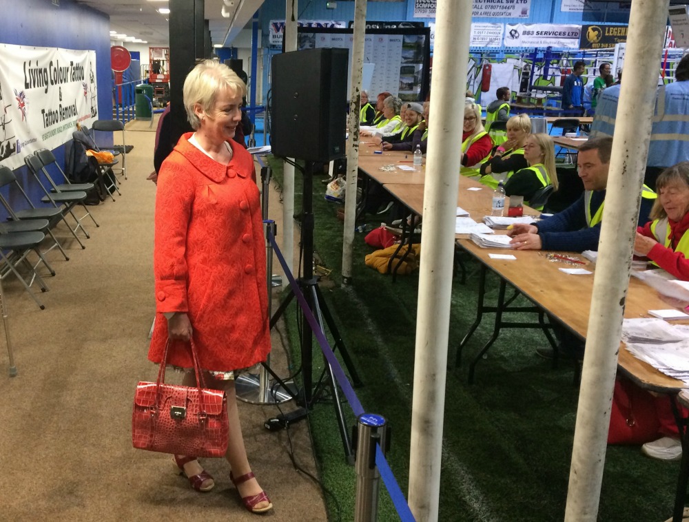 Bristol North West Lib Dem hopeful Celia Downie is on the count floor watching the goings on.