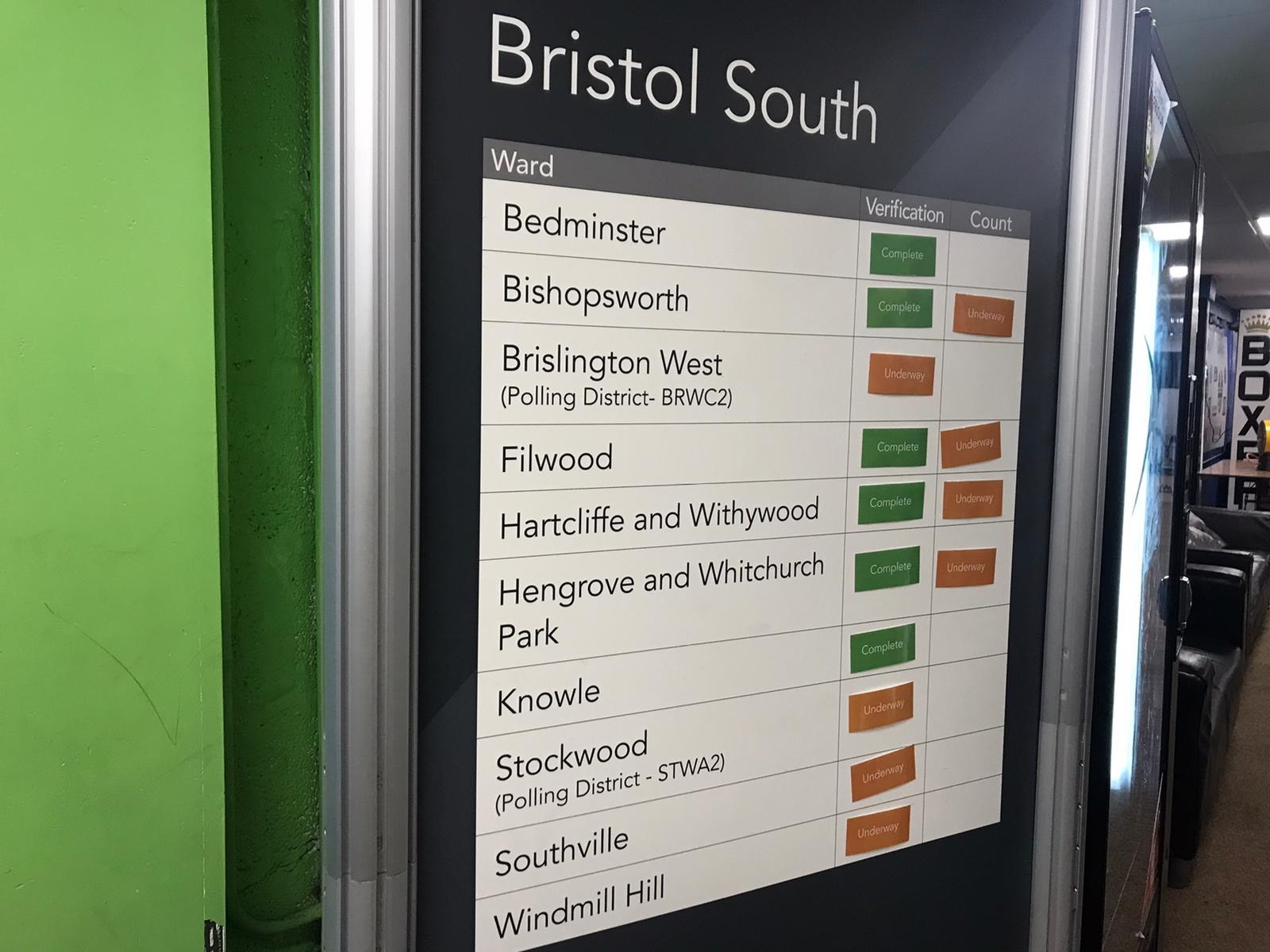 Four wards have now finished the verification stage and are now starting counting votes in Bristol South.