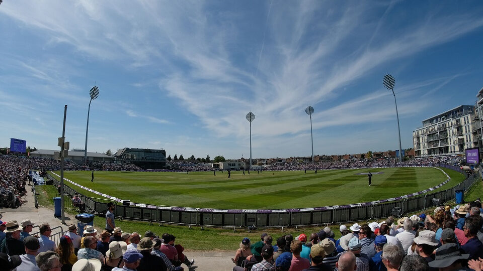 England games at the County Ground always sell out, with temporary stands built to increase capacity – photo: Gloucestershire Cricket
