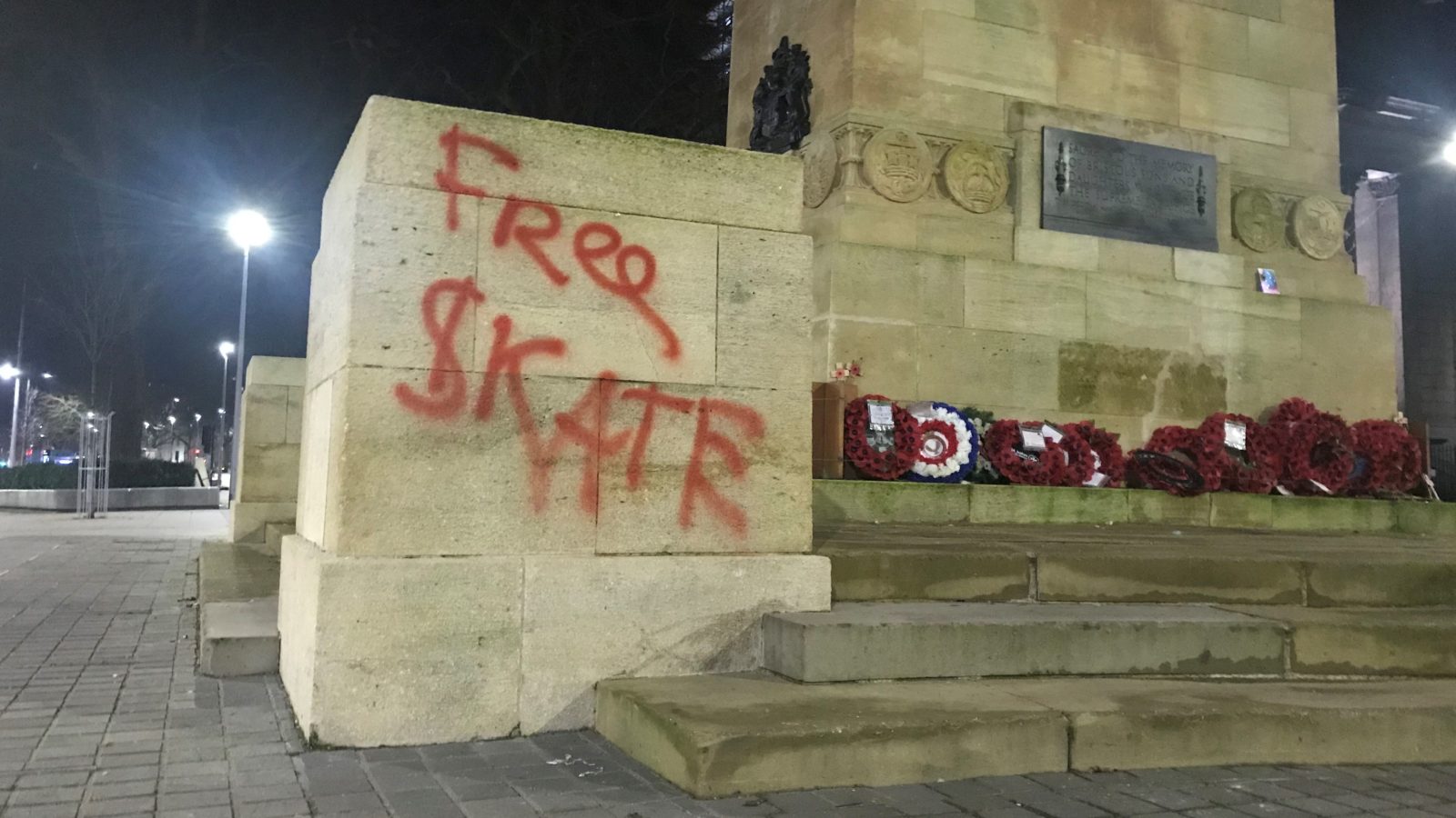 Graffiti daubed on the Cenotaph has been roundly condemned and blamed by one skater who Bristol24/7 spoke to as the work of one troubled individual.