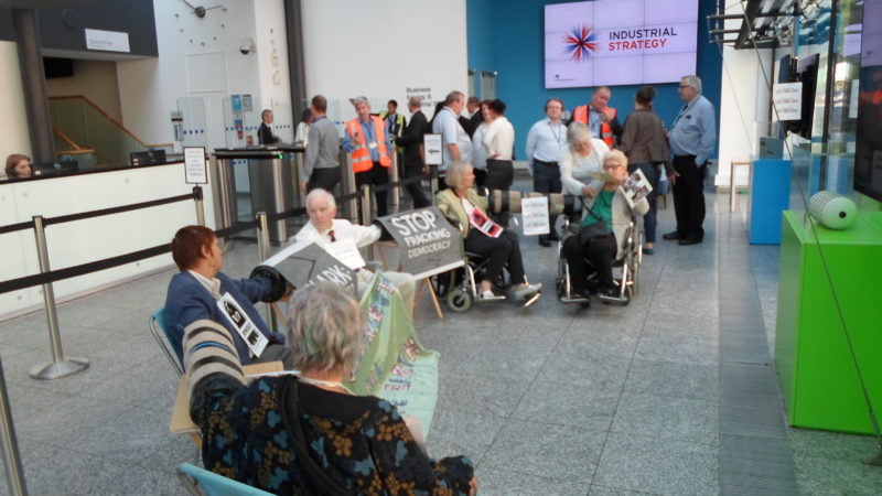 A group of grandparents and elders from Bristol have staged a protest at the Government Department of Business, Energy and Industrial Strategy in London. Five of the pensioners locked themselves together in the foyer and refused to leave for more than five hours, demanding that Secretary of State for Business, Energy and Industrial Strategy Greg Clark hear their concerns about fracking