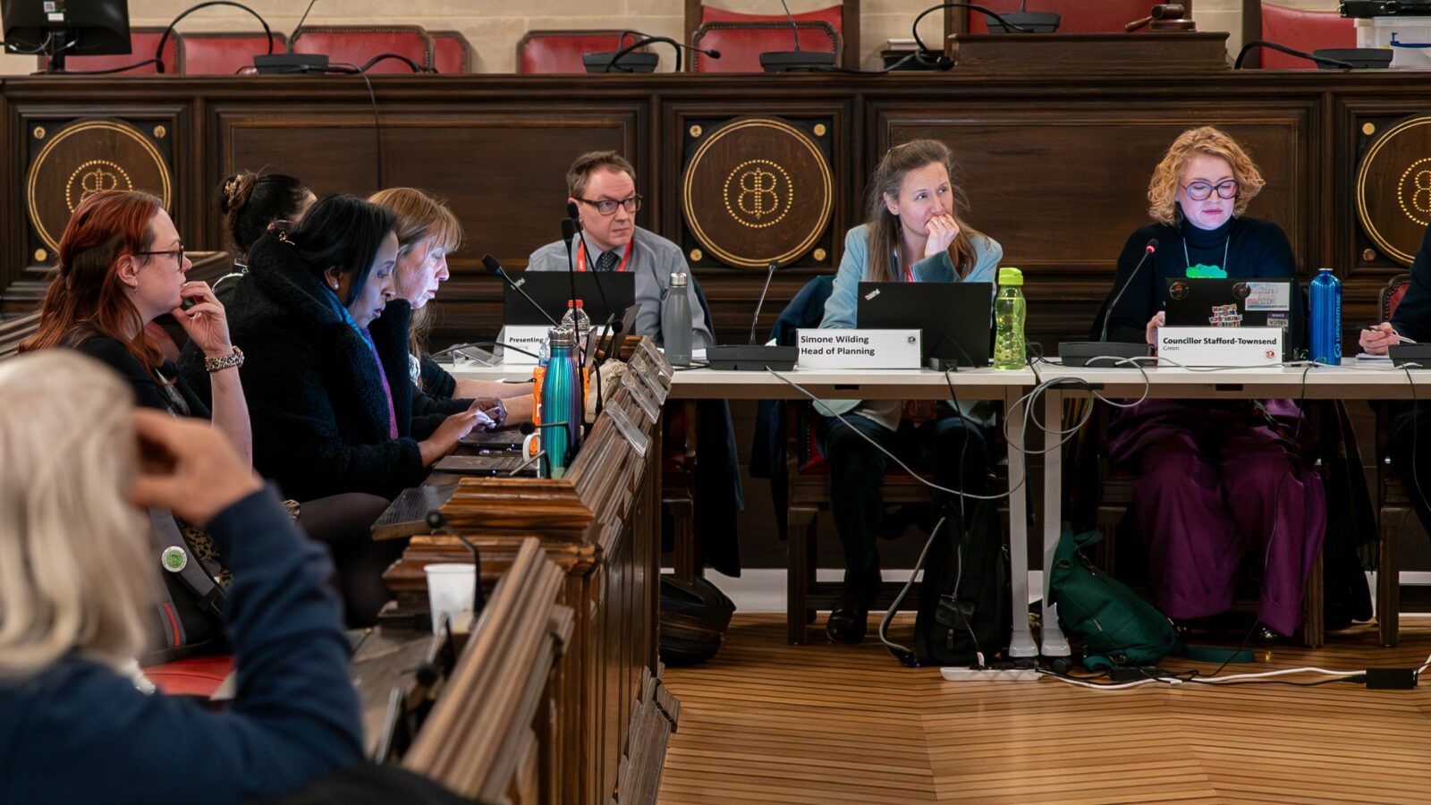Ani Stafford-Townsend chairing the planning committee meeting on Yew Tree Farm at City Hall – photo: Rob Browne