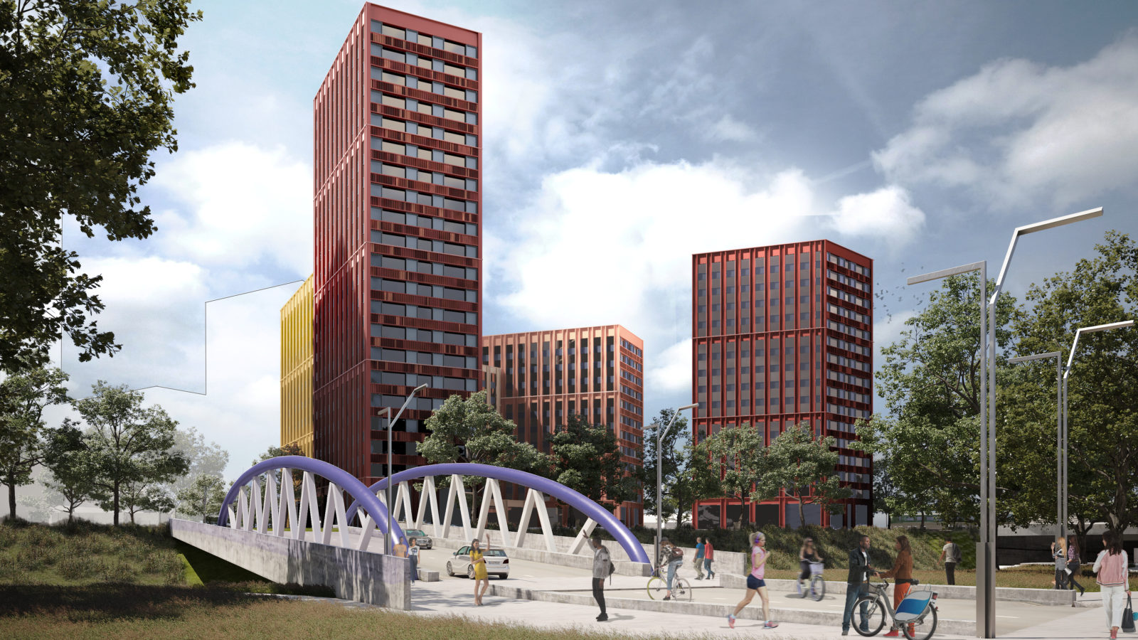 An artist impression of what the three accommodation blocks will look like from Temple Meads
