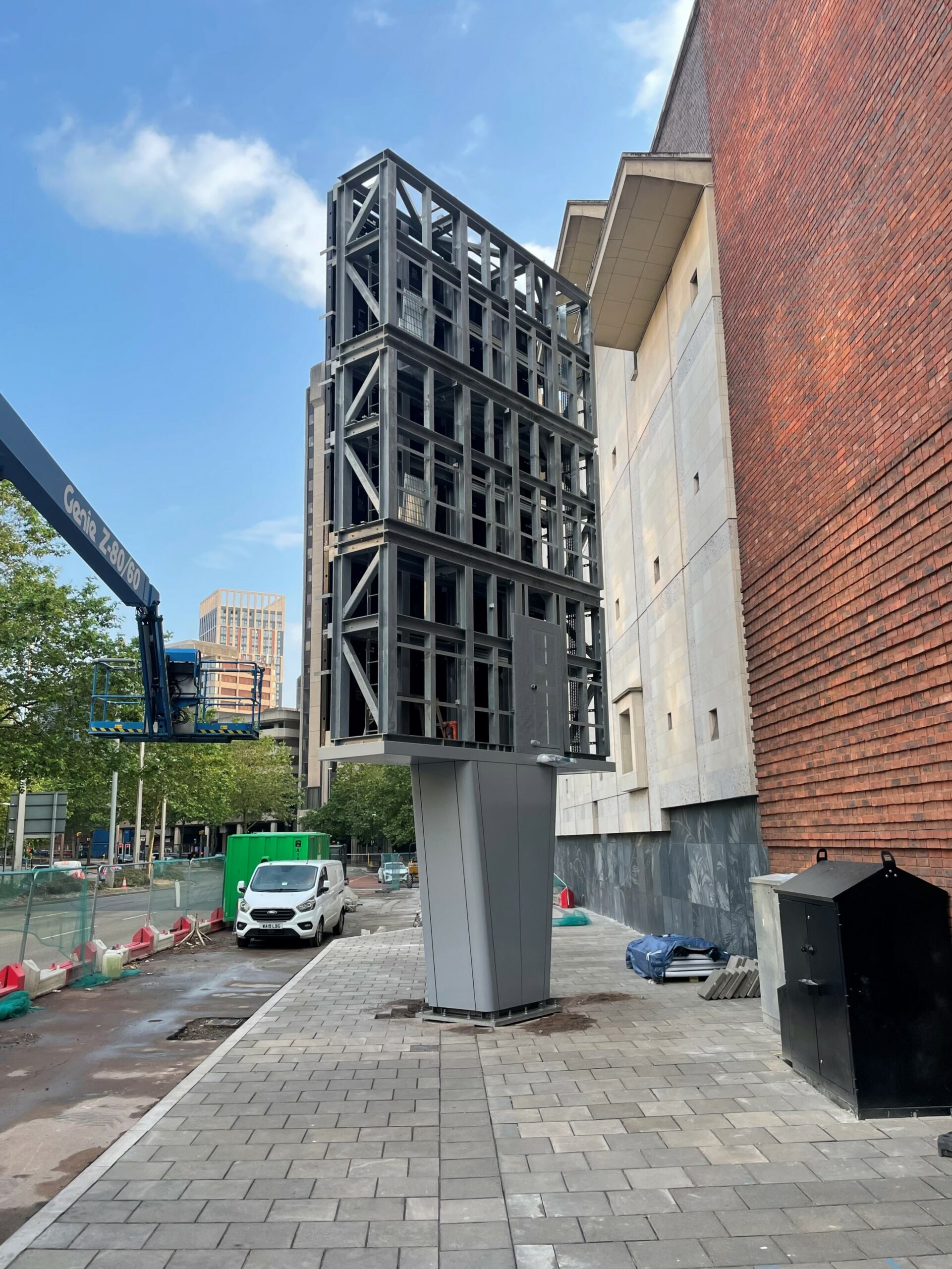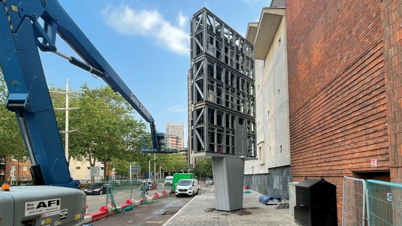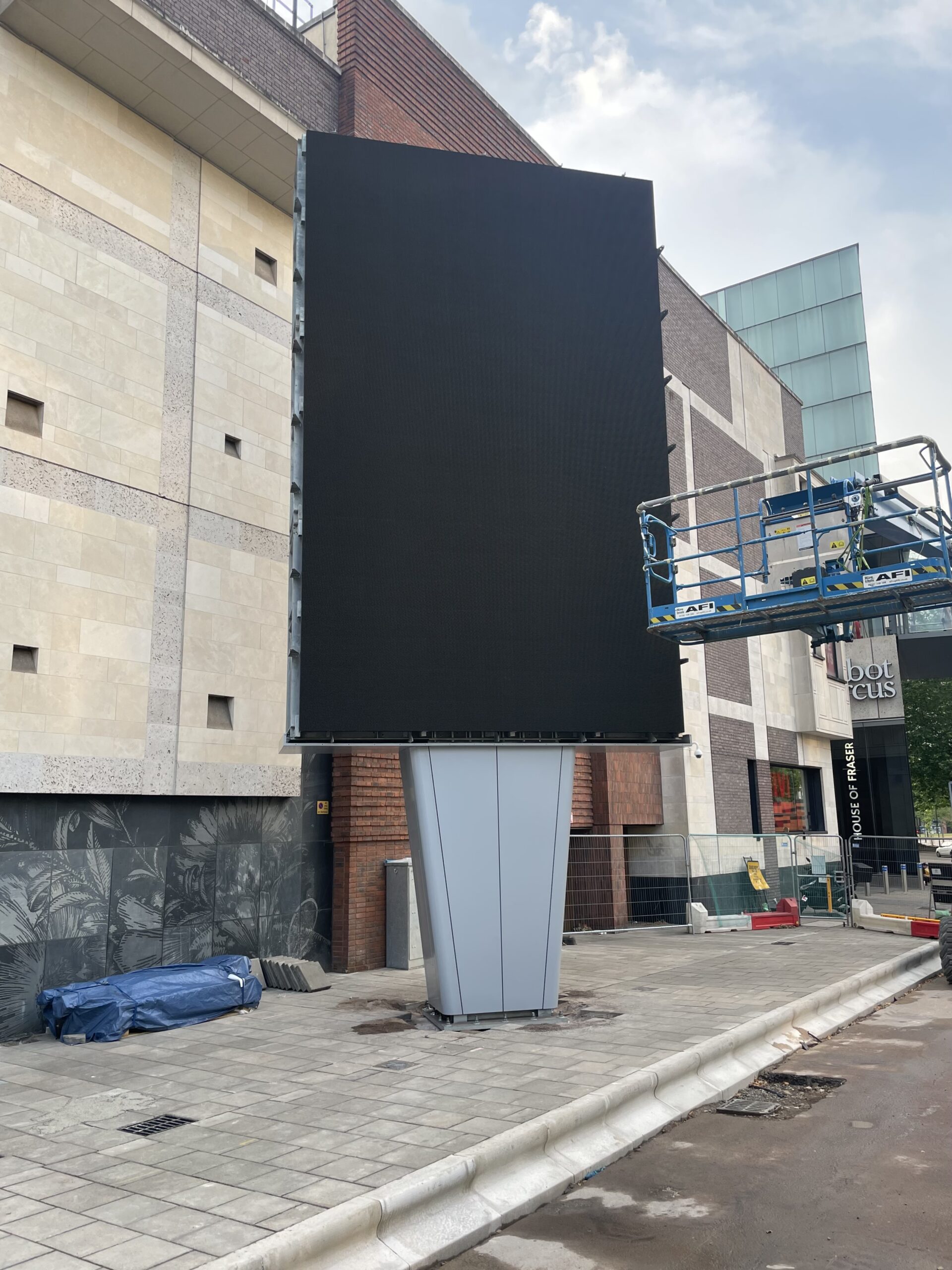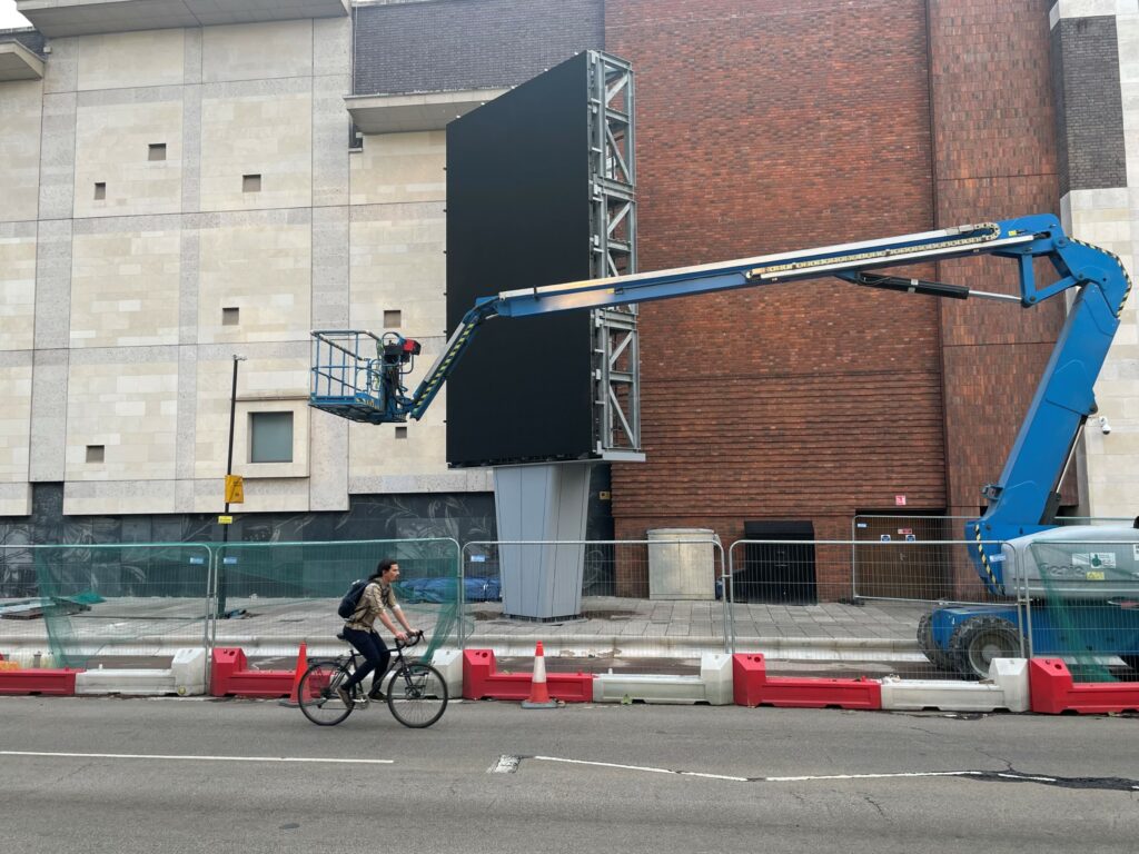 The screen on Bond Street South is in front of artwork commissioned for the opening of Cabot Circus