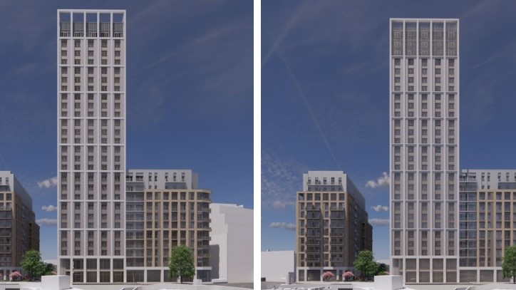 The height of a proposed 28-storey tower block due to be built on the site of the former Debenhams has been reduced – but only by a few metres due to the removal of an originally planned open rooftop.