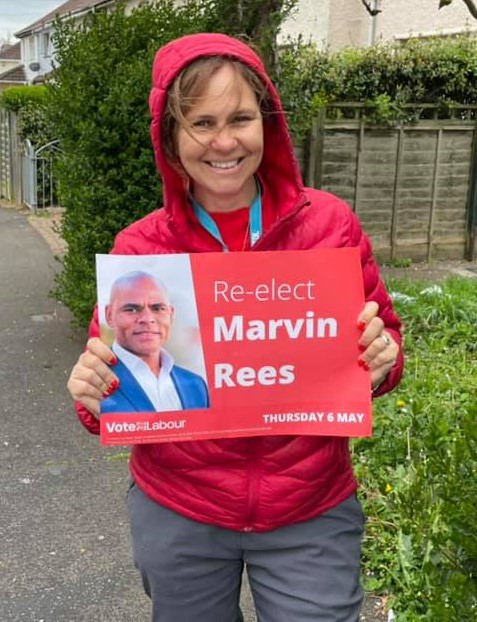 Helen Godwin campaigning to re-elect Marvin Rees as Bristol mayor in May – photo: Helen Godwin / Facebook