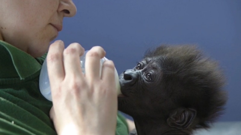 Don’t they grow up fast – the baby gorilla when she was newborn