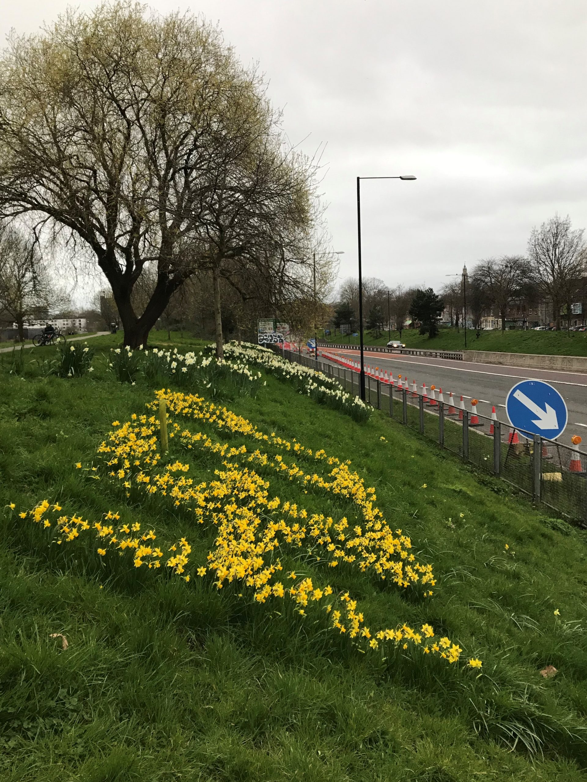 The word has now appeared spelled out in daffodils next to the M32 – the latest example of guerrilla gardening that saw ‘Earth’ and ‘fragile’ in bloom on a roundabout near Bedminster Down.