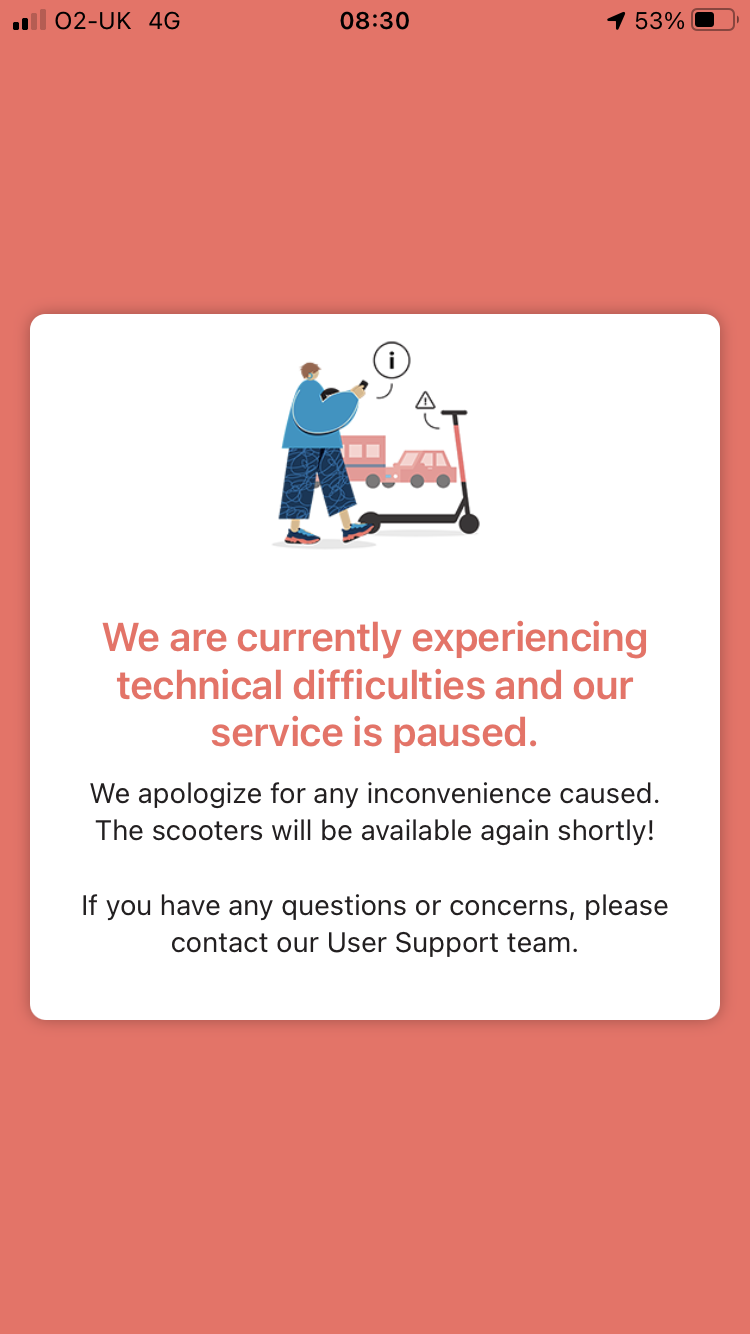 The Swedish company were given 24 hours to cancel the parking zone and on Friday morning, users in the app were unable to hire scooters due to “technical difficulties”.